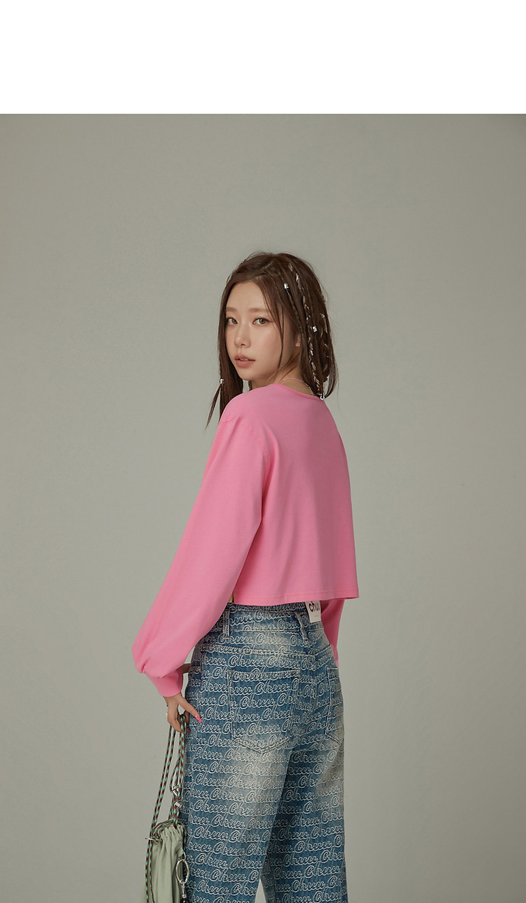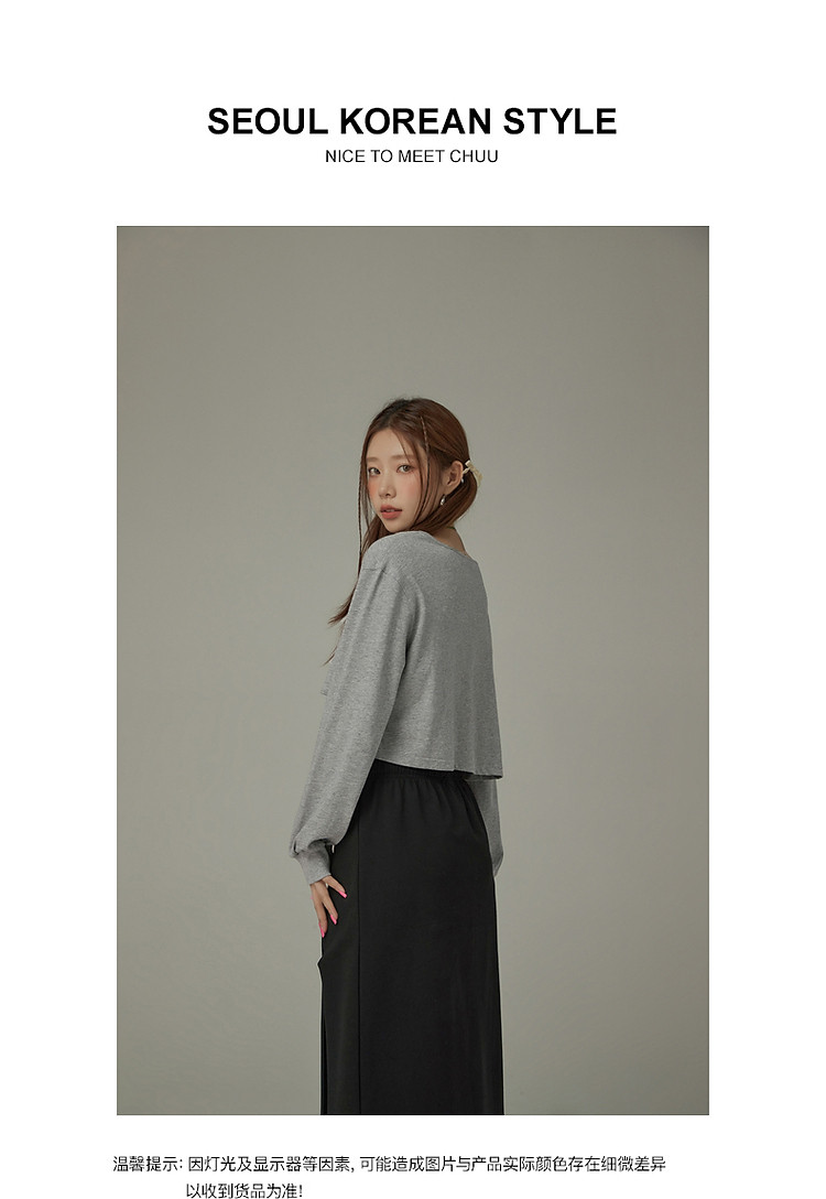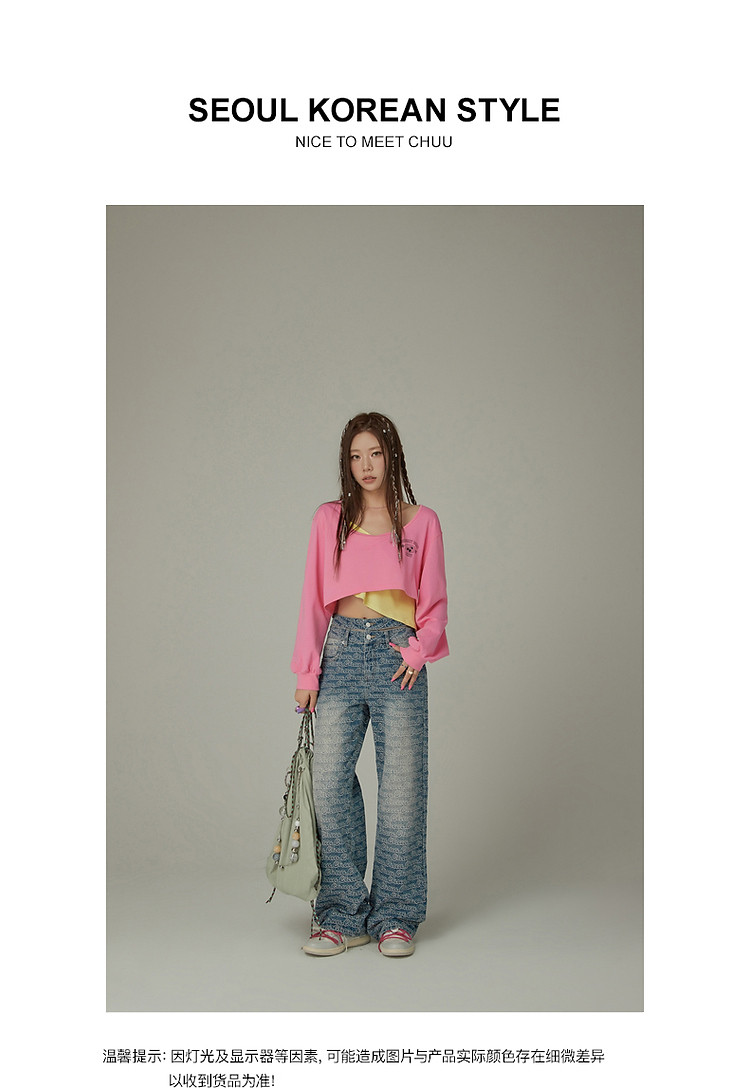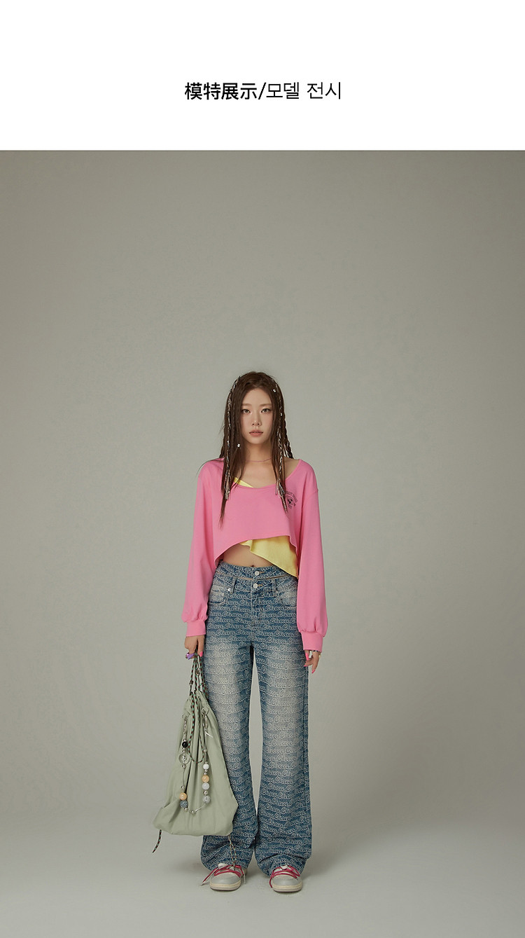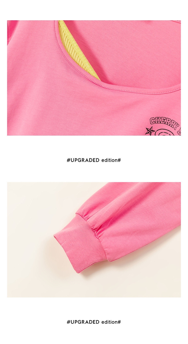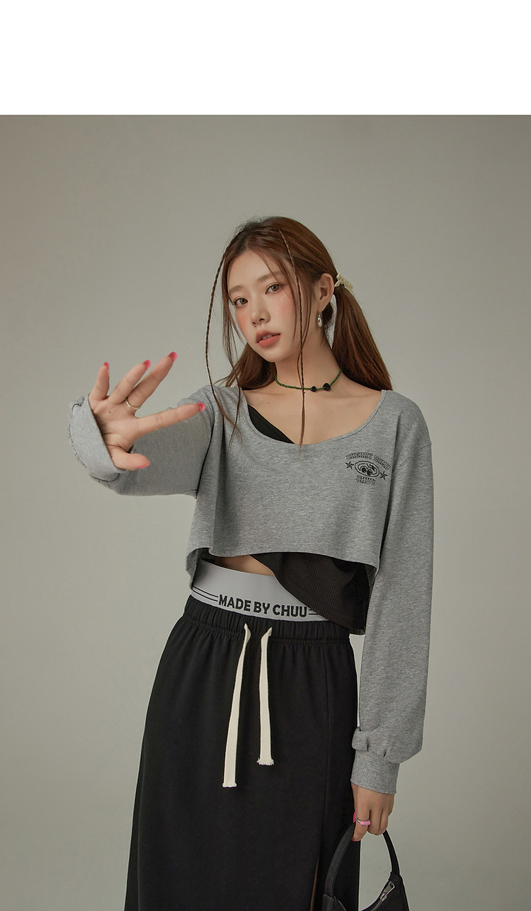 商品名称:撞色假两件T恤女春秋印花大圆领长袖短上衣 150163