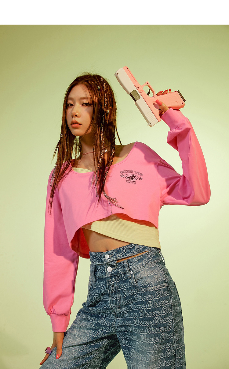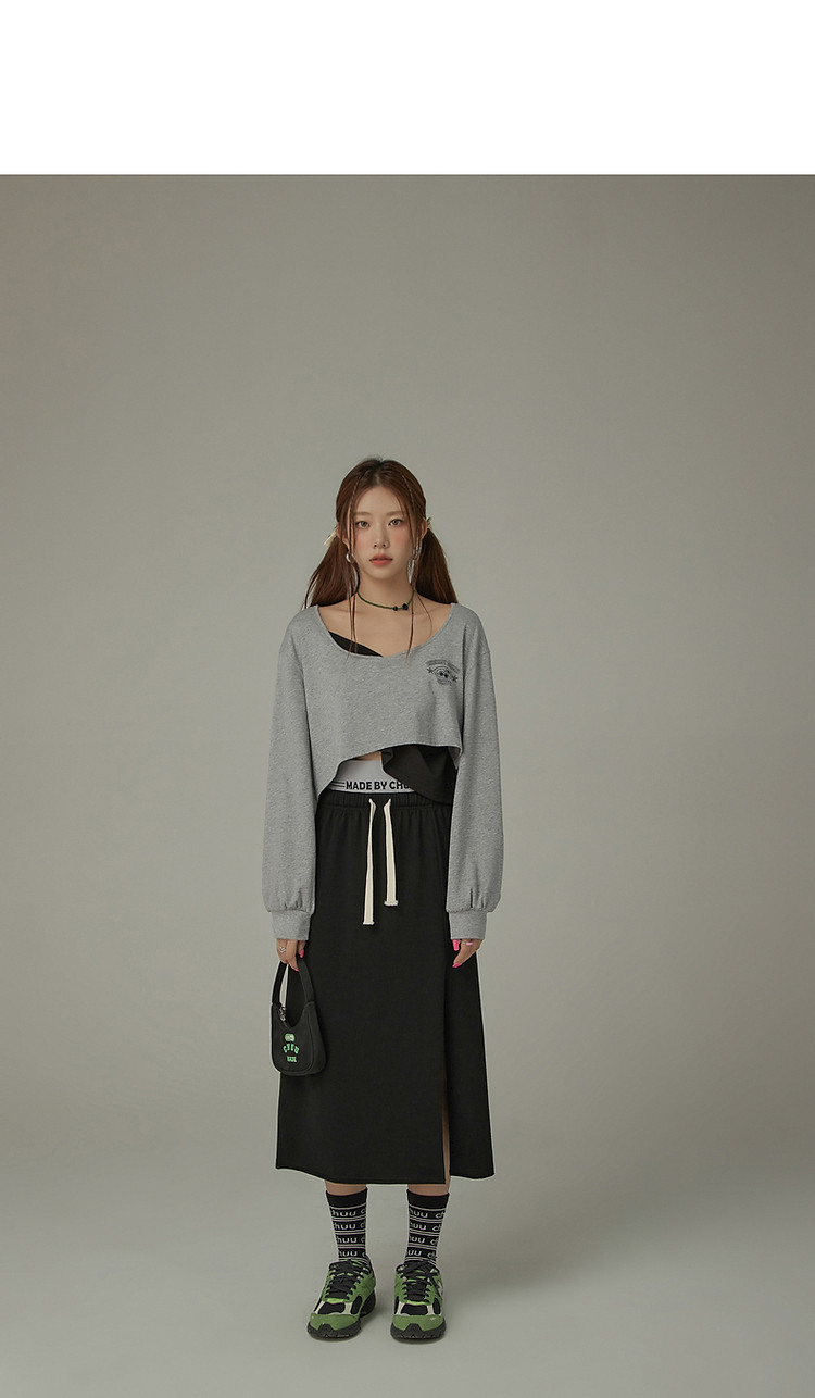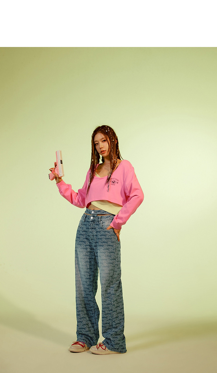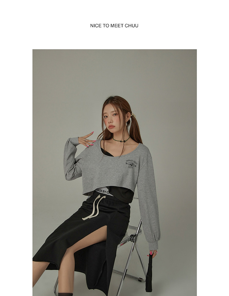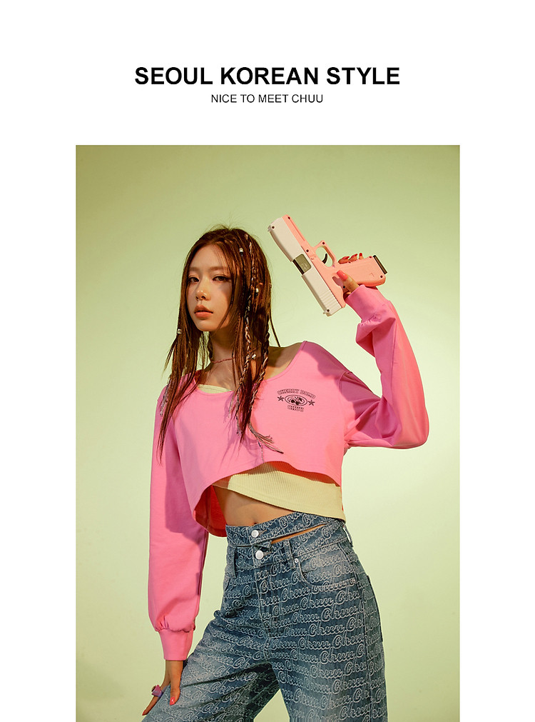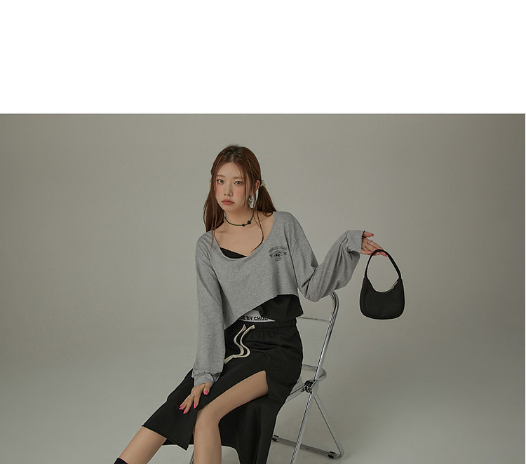 商品名称:撞色假两件T恤女春秋印花大圆领长袖短上衣 150163