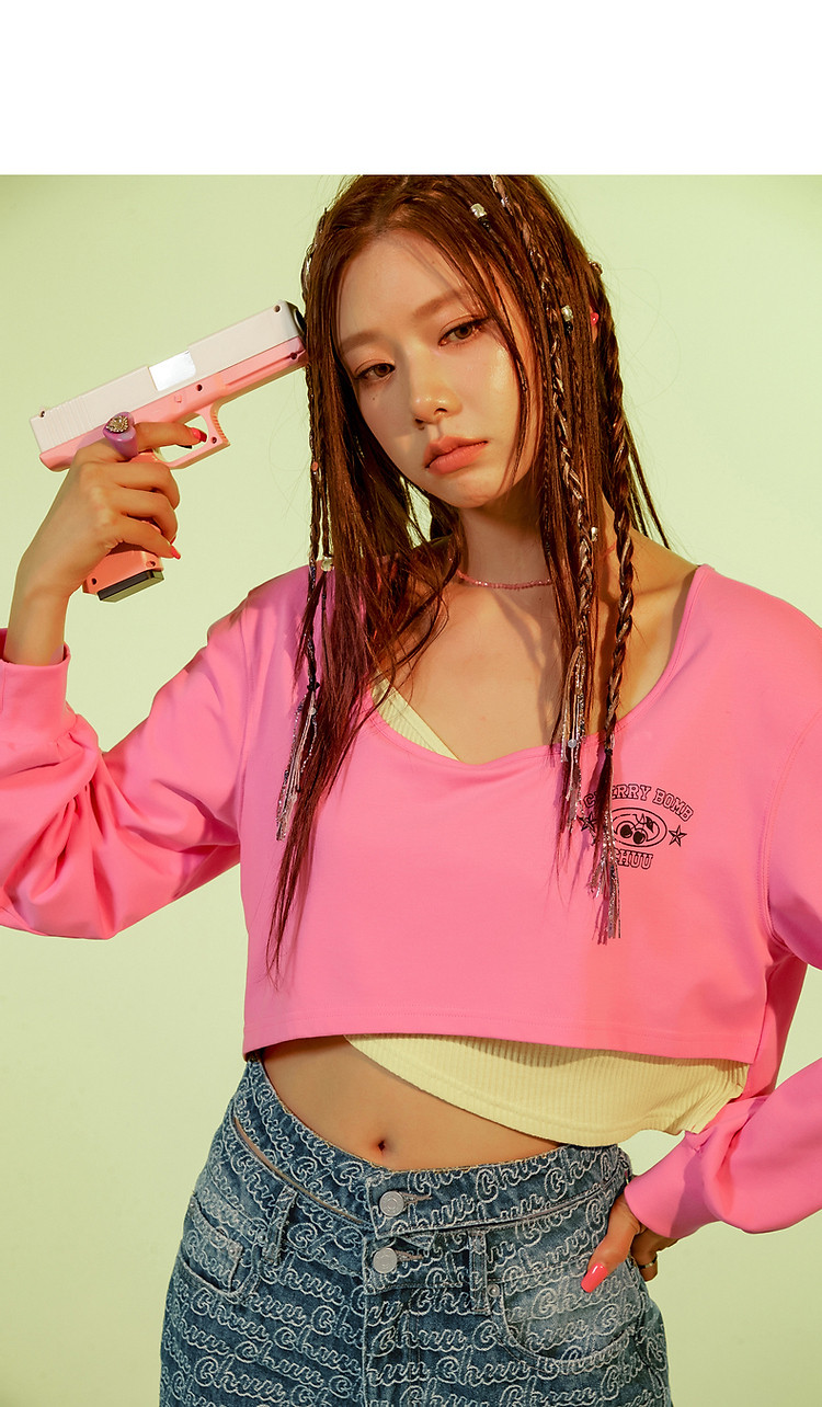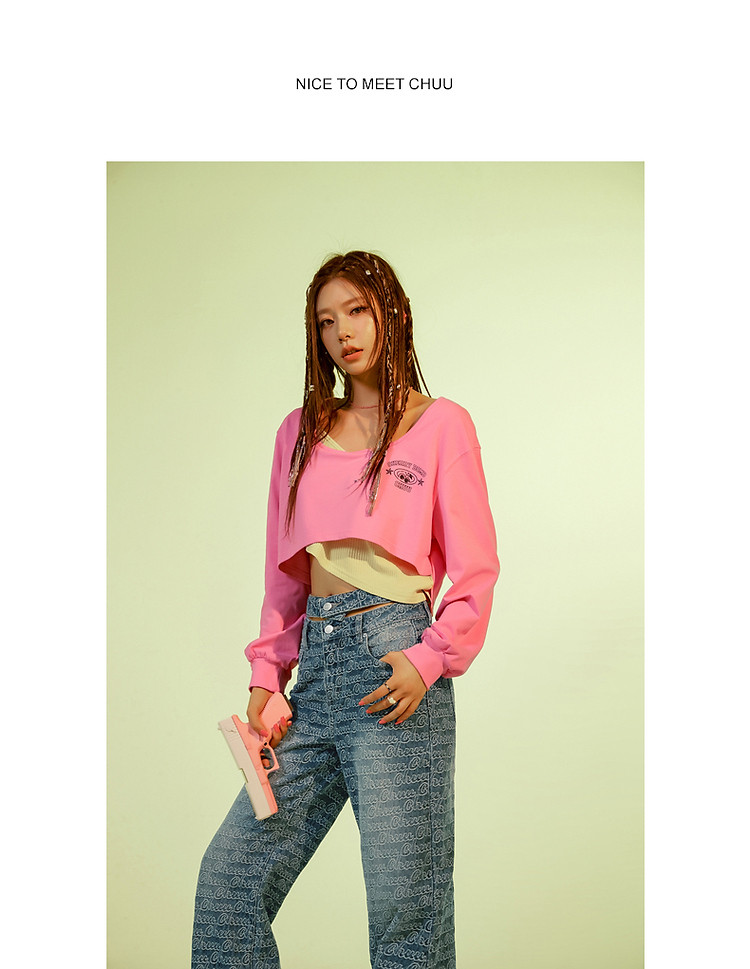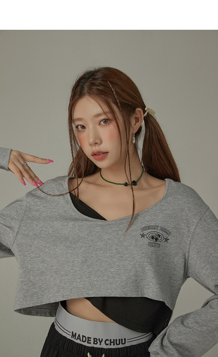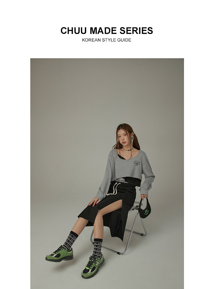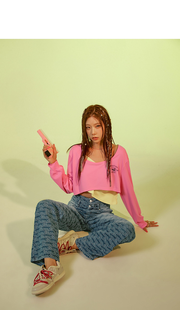 商品名称:撞色假两件T恤女春秋印花大圆领长袖短上衣 150163