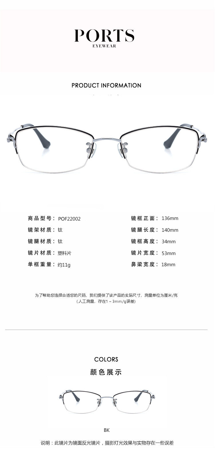 商品名称:PORTS女款半框钛眼镜光学架POF22002 302026