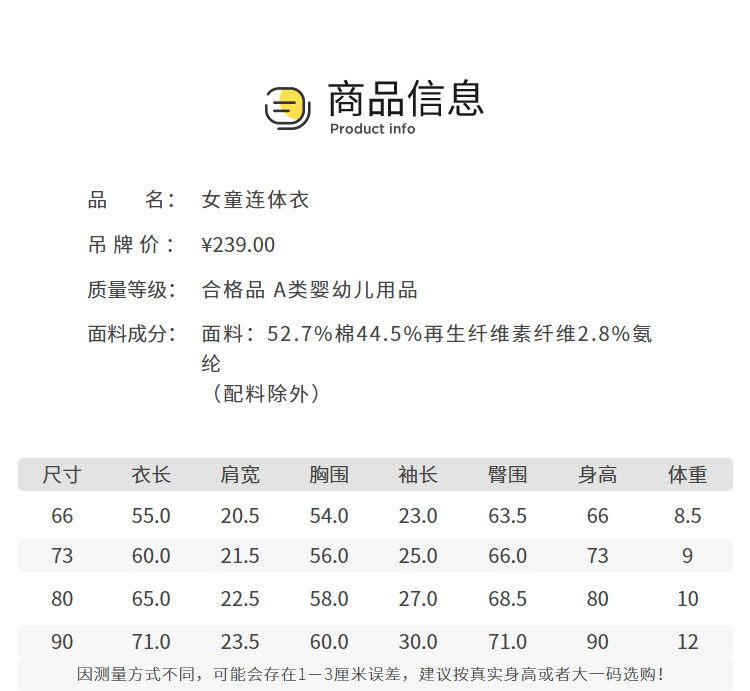 商品名称:婴儿连体衣宝宝连体服外出抱衣爬服春秋款小童女童哈衣甜美活泼 290373
