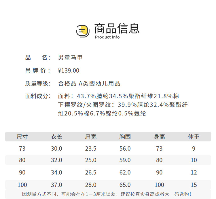 商品名称:儿童马甲男童春秋款婴儿背心宝宝保暖坎肩萌趣可爱时尚童装上衣 779333