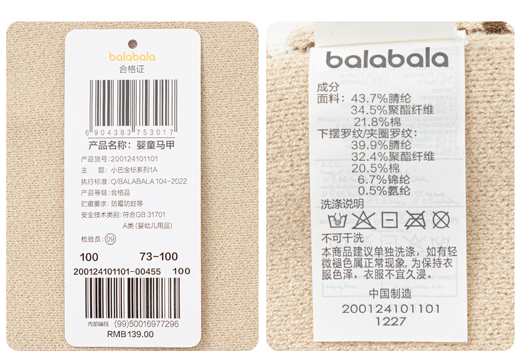 巴拉巴拉儿童马甲女童春秋背心婴儿保暖坎肩可爱洋气 408837