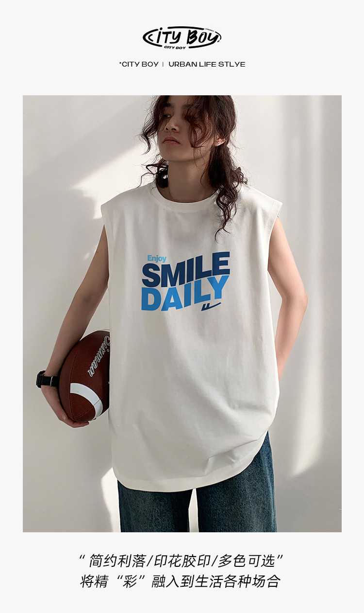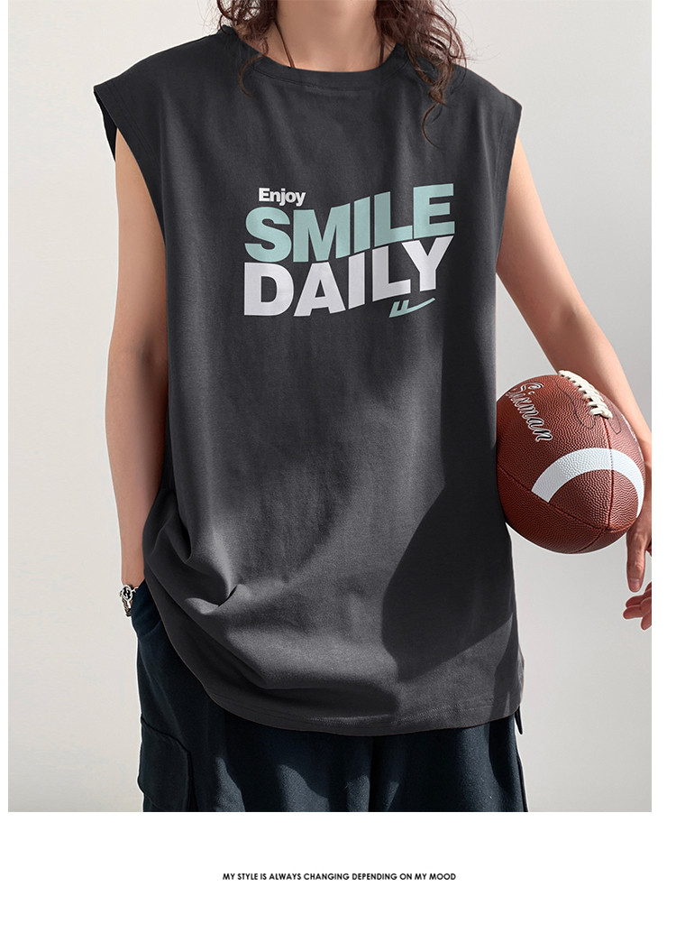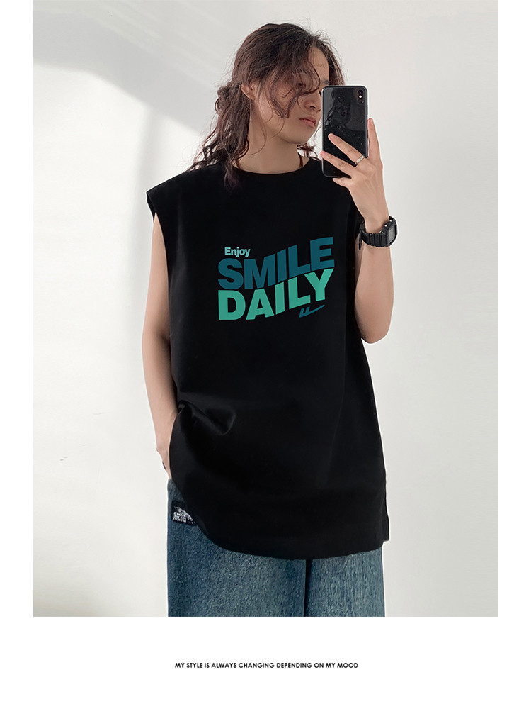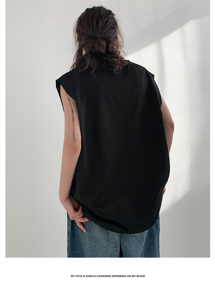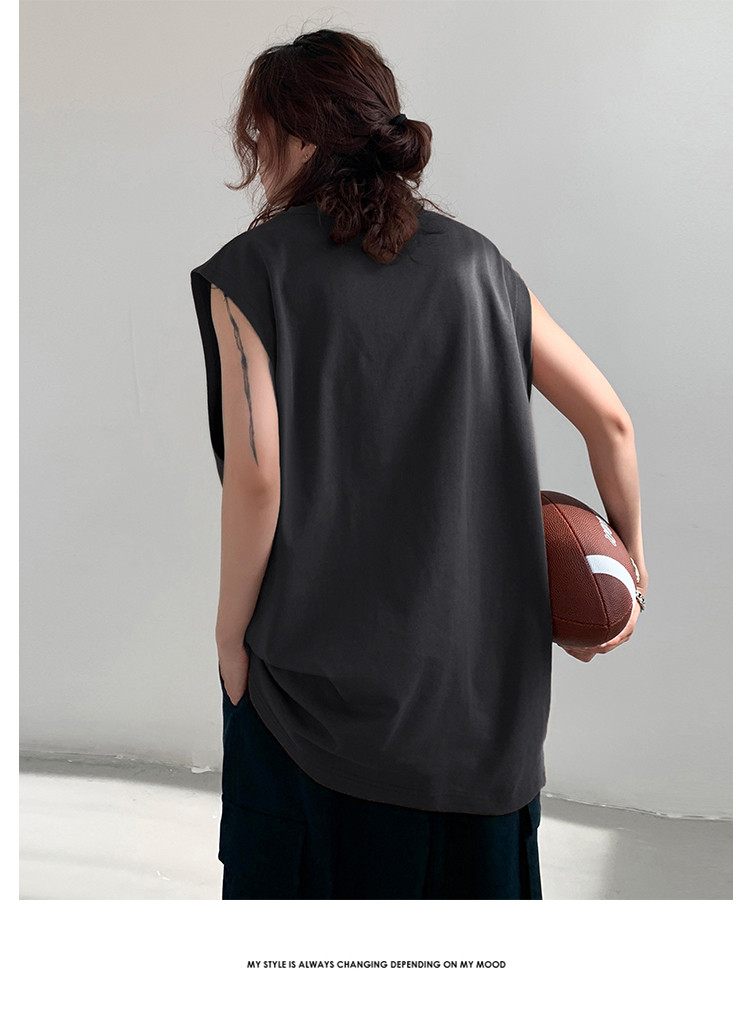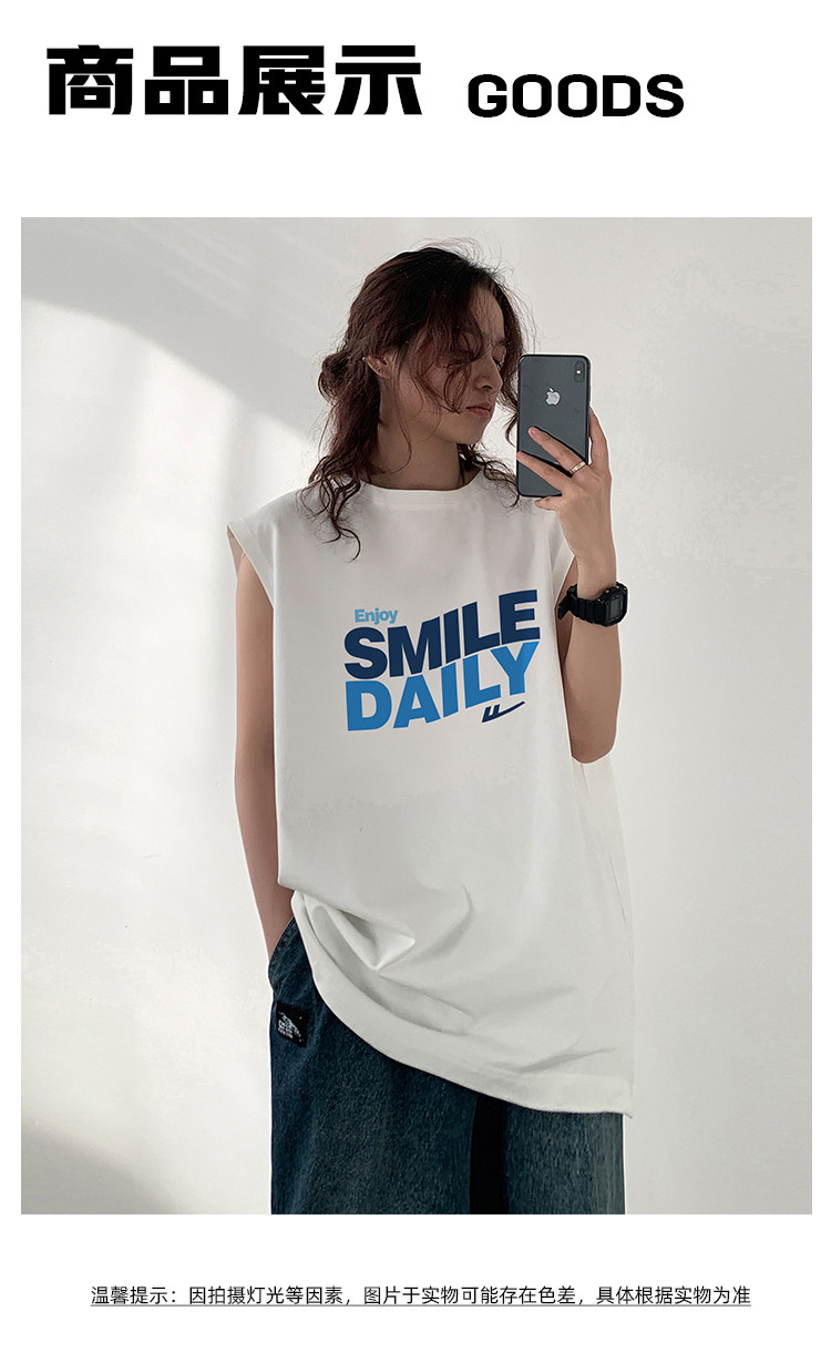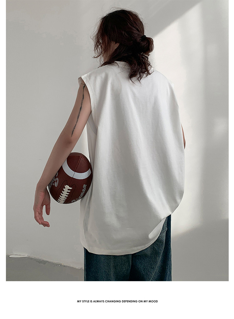 商品名称:美式运动薄背心2025夏季外穿纯棉宽松男女款甜酷无袖t恤上衣 960403