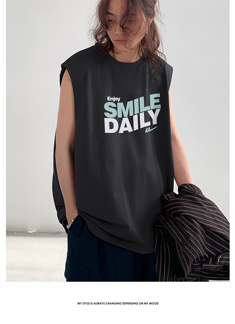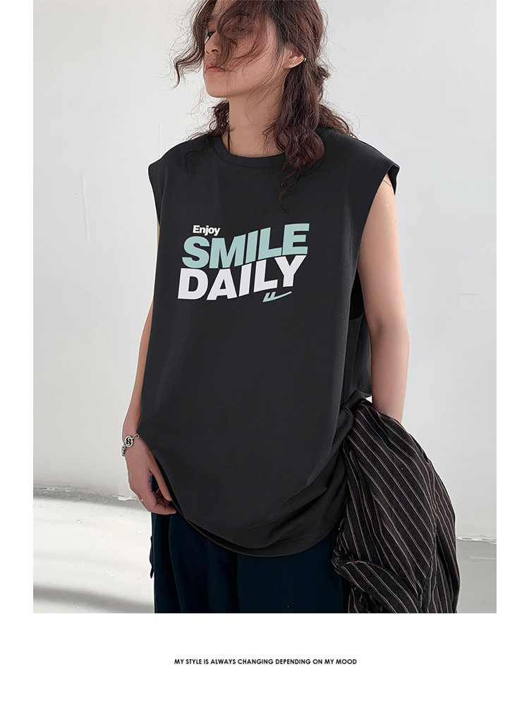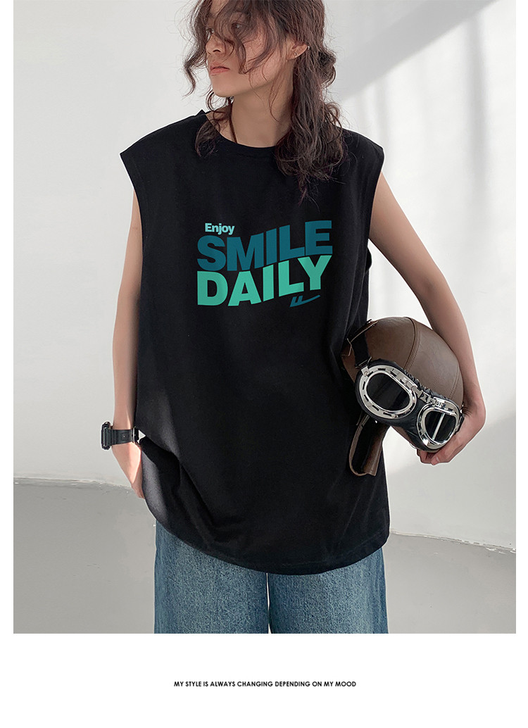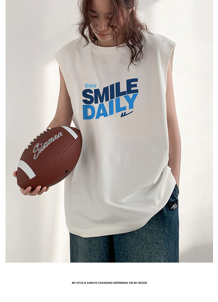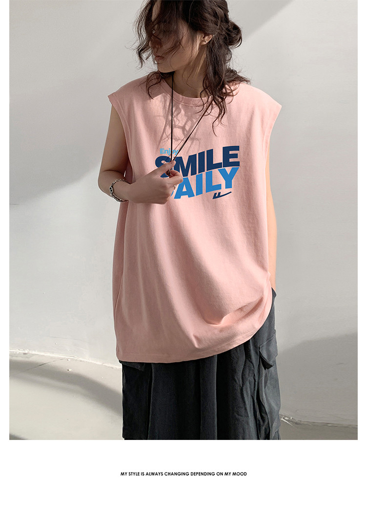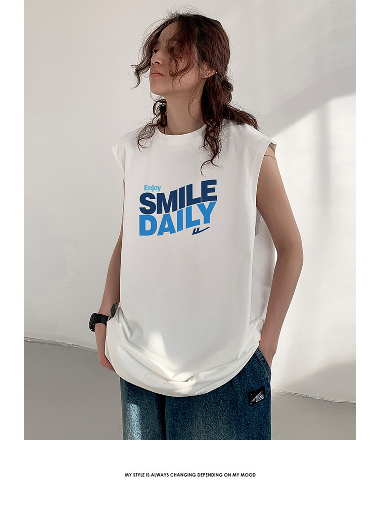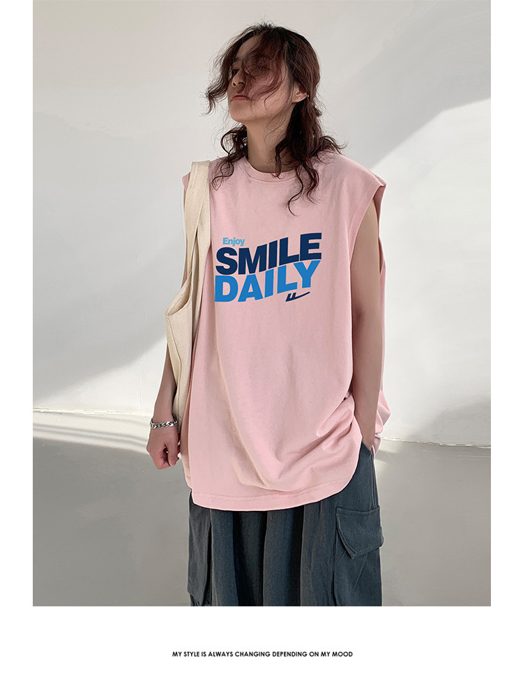 商品名称:美式运动薄背心2025夏季外穿纯棉宽松男女款甜酷无袖t恤上衣 960403