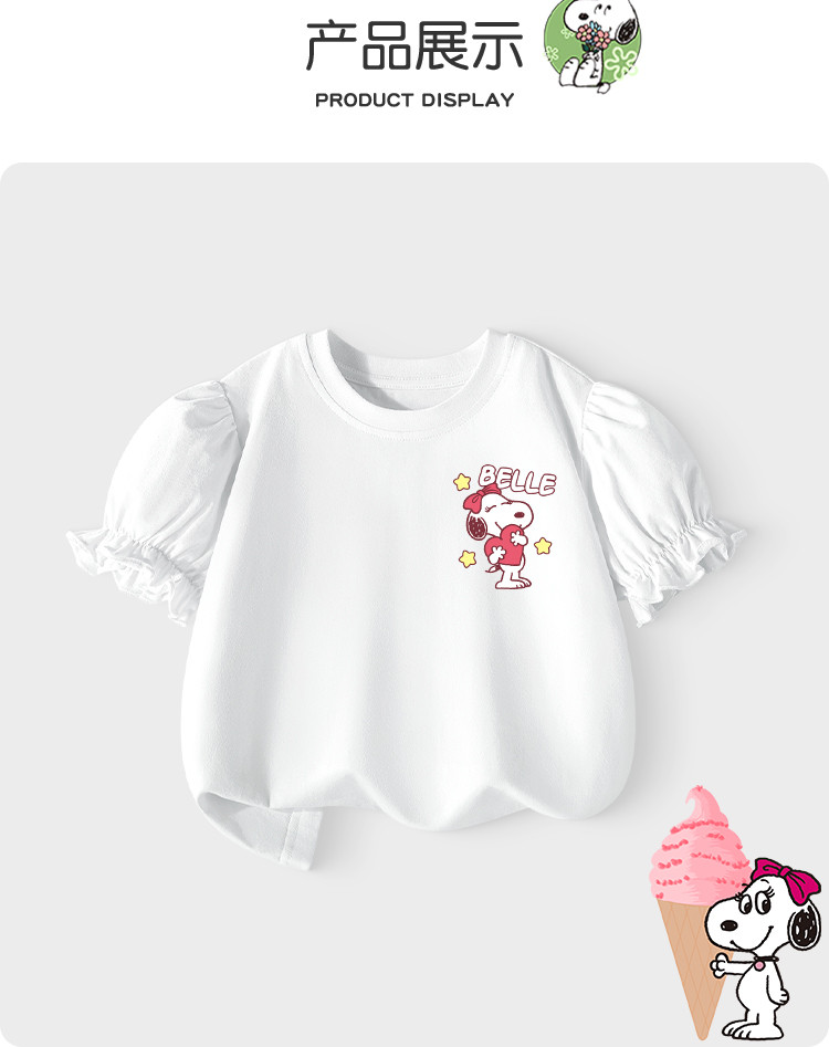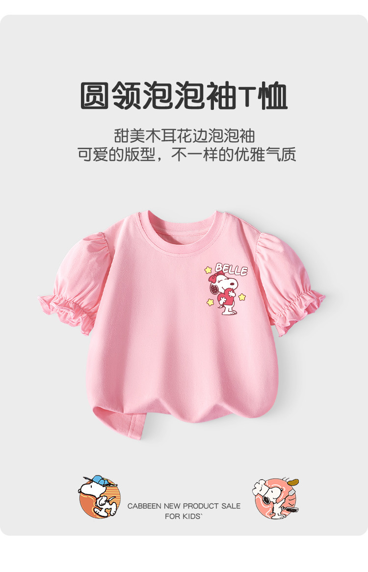 商品名称:2025新款女童t恤中大童纯棉夏季短袖儿童洋气泡泡袖上衣女 509151