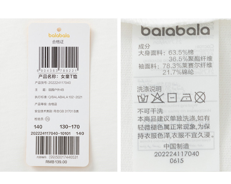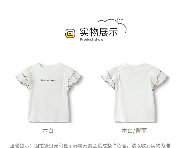 商品名称:巴拉巴拉儿童短袖女童t恤夏装中大童波浪边飞袖甜美印花上衣时尚 804165