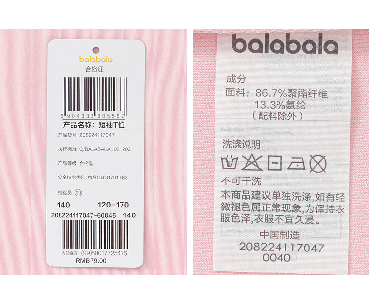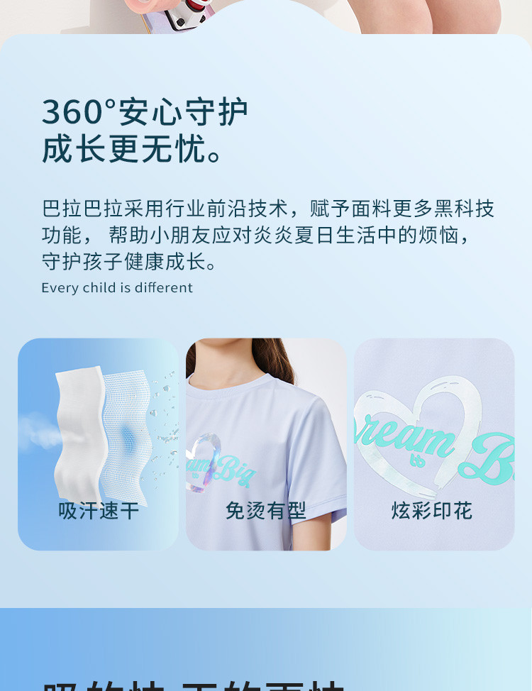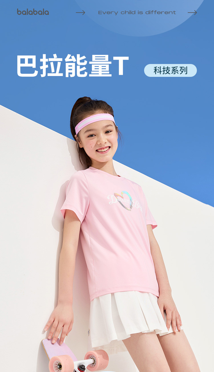 商品名称:速干儿童t恤女童短袖夏装中大童薄款透气印花打底衫 646021
