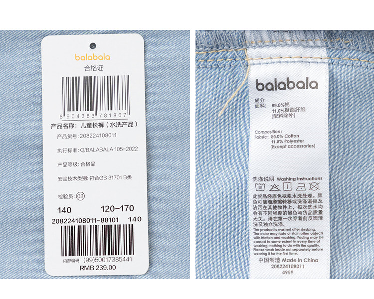 商品名称:轻薄直筒牛仔裤儿童裤子女童长裤夏季大童防蚊裤 345541