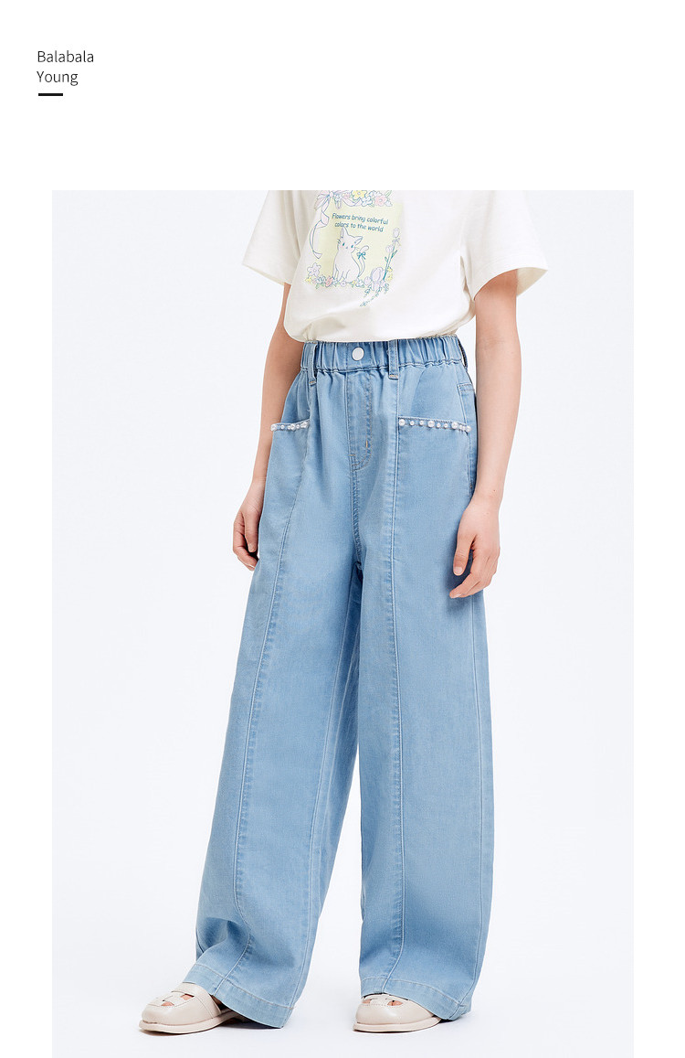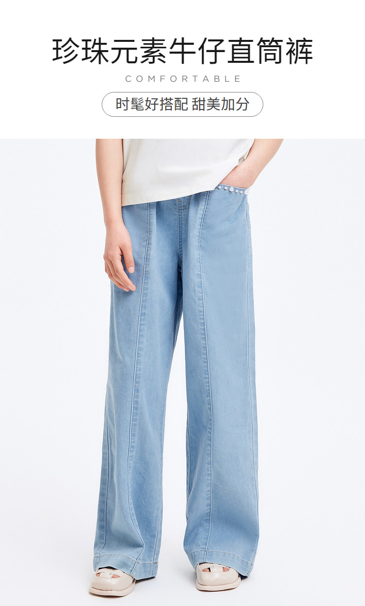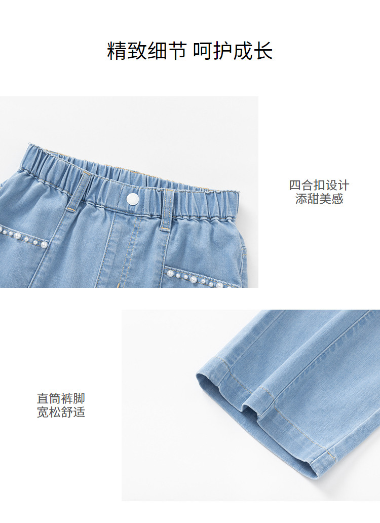 轻薄直筒牛仔裤儿童裤子女童长裤夏季大童防蚊裤 345541