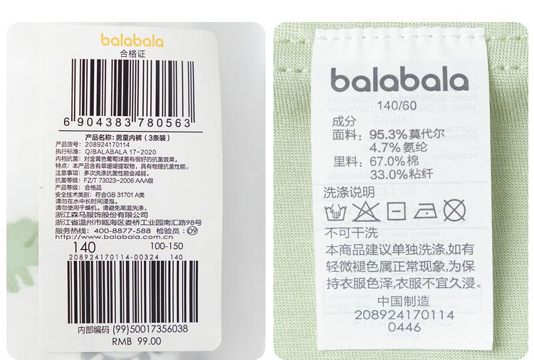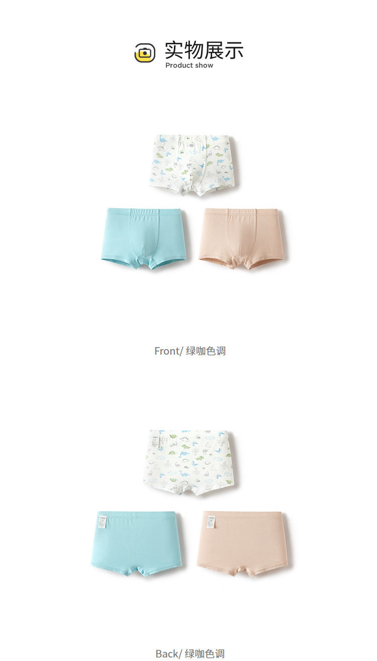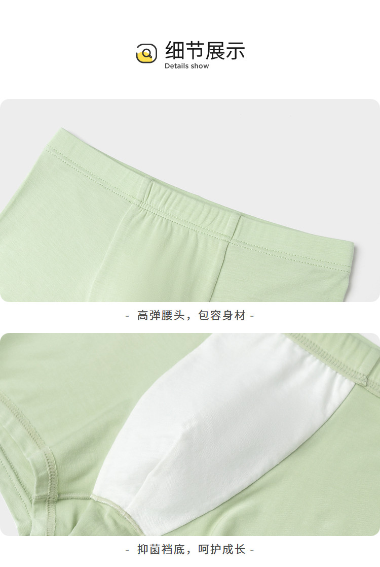 商品名称:三条装草珊瑚3A抑菌男童内裤成长期儿童内裤莫代尔平角四角短裤 247813