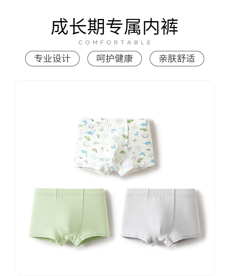 三条装草珊瑚3A抑菌男童内裤成长期儿童内裤莫代尔平角四角短裤 247813