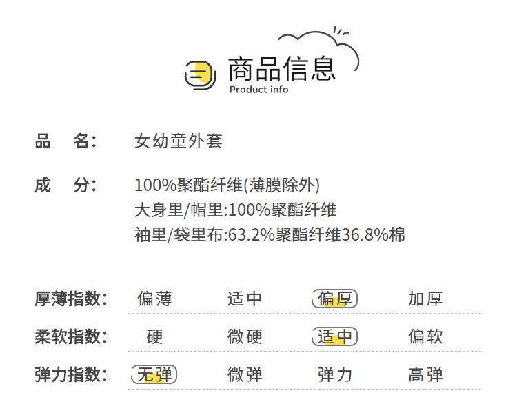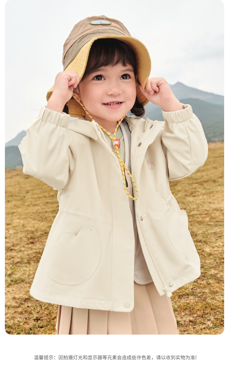 商品名称:防水透湿耐磨女童外套儿童春秋装加绒保暖连帽户外防水上衣女小童 166853