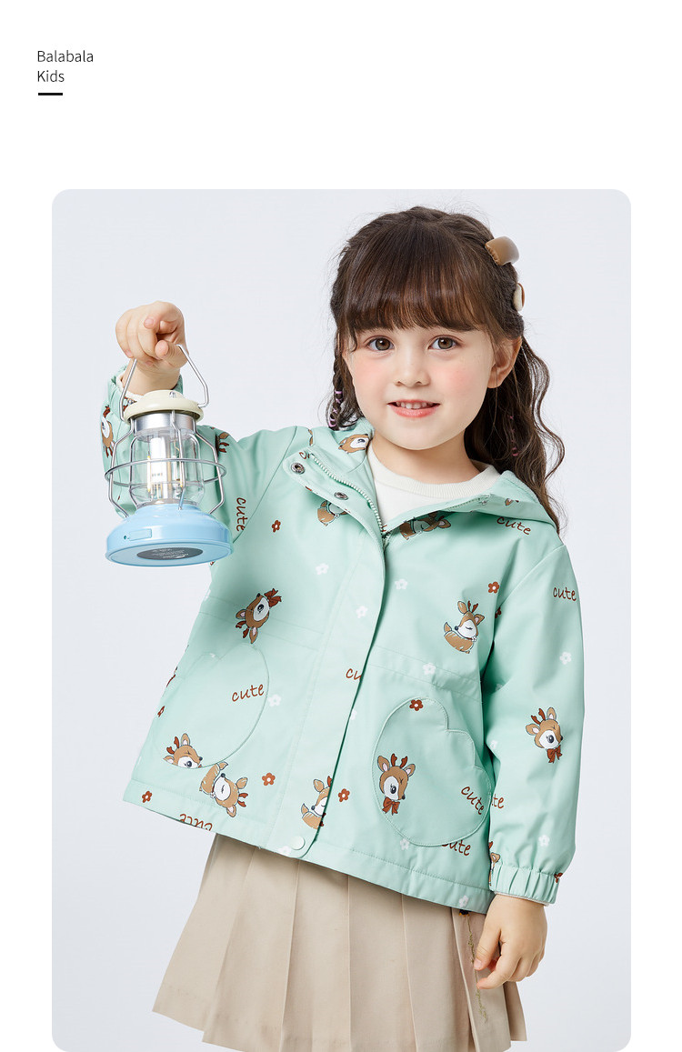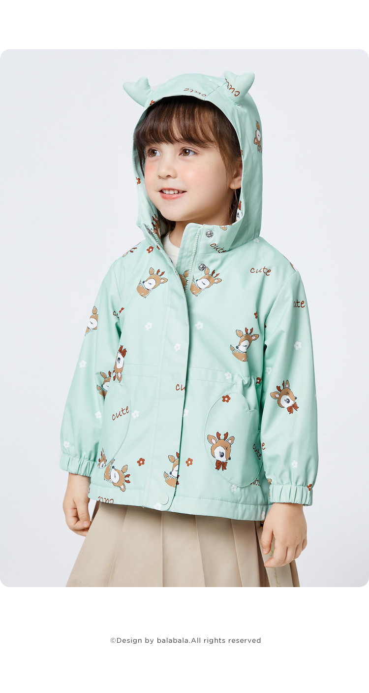 防水透湿耐磨女童外套儿童春秋装加绒保暖连帽户外防水上衣女小童 166853
