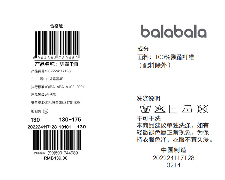 商品名称:巴拉巴拉童装打底衫儿童短袖t恤男童中大童夏装简约 865605