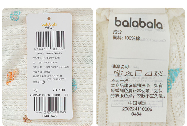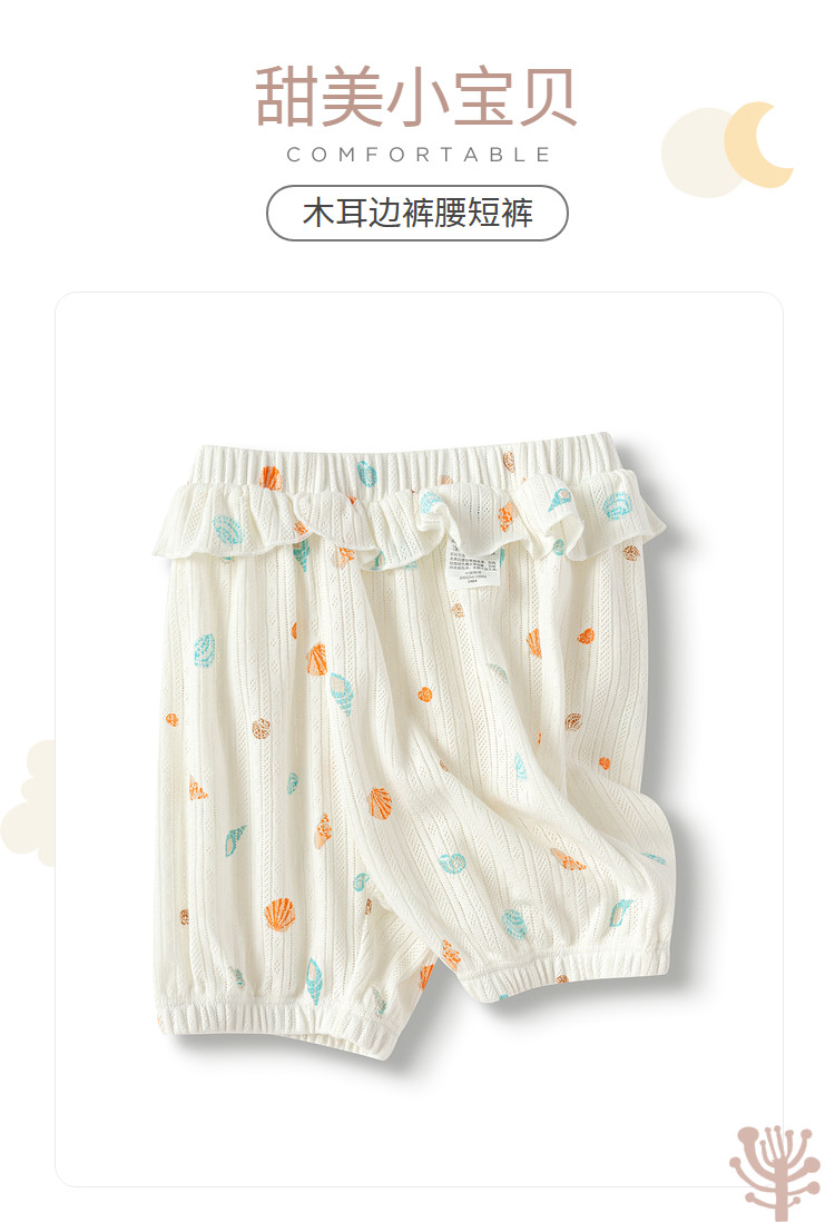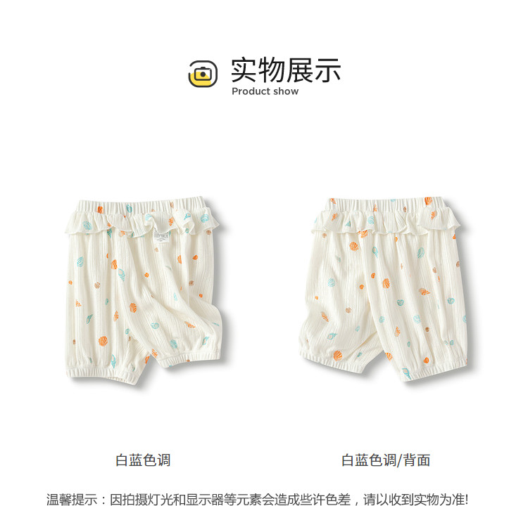 商品名称:巴拉巴拉女童裤子婴儿短裤休闲裤夏装彩色满印甜美气质荷叶边时尚 053381