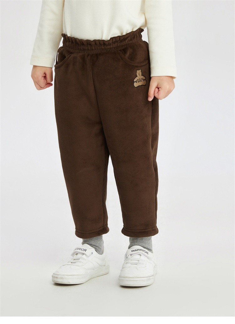 Gap女幼童春秋款LOGO抓绒保暖灯芯 绒长裤789187加厚萝卜裤 471066