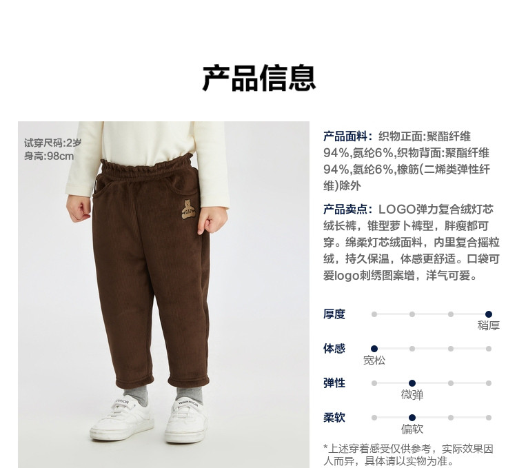 商品名称:Gap女幼童春秋款LOGO抓绒保暖灯芯 绒长裤789187加厚萝卜裤 471066