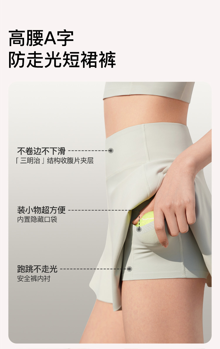 商品名称:【透气】高腰A字防走光短裙裤运动裙显瘦防晒抗菌打底裙 782144
