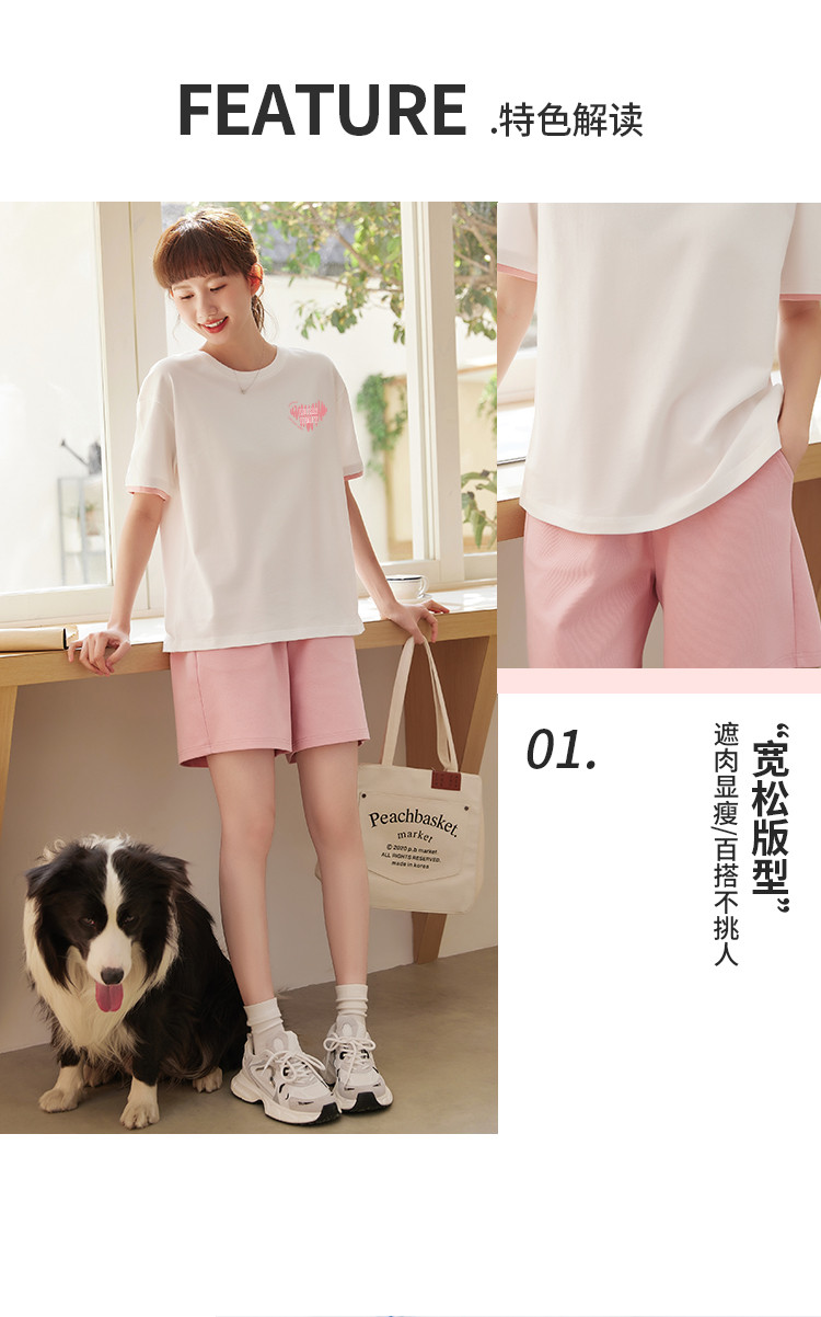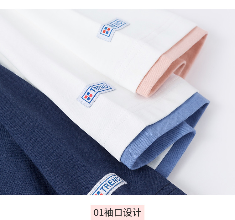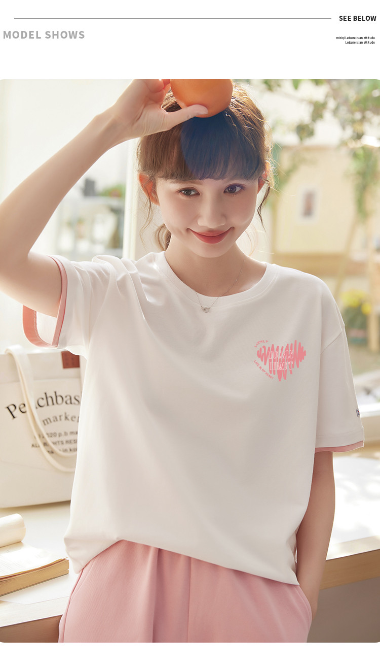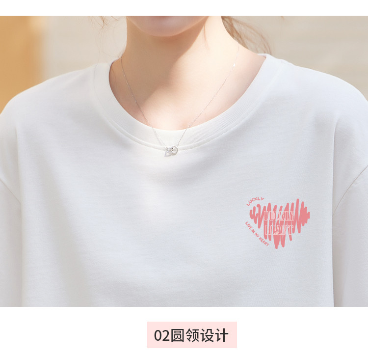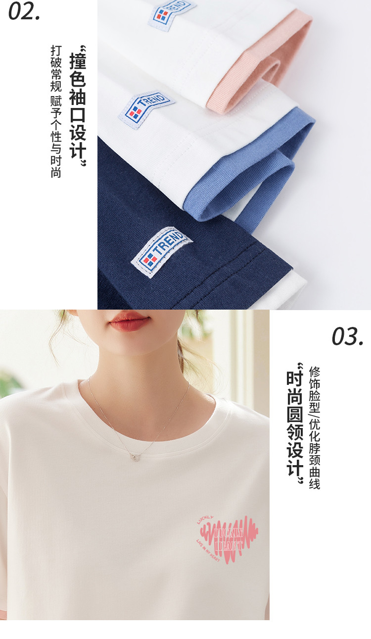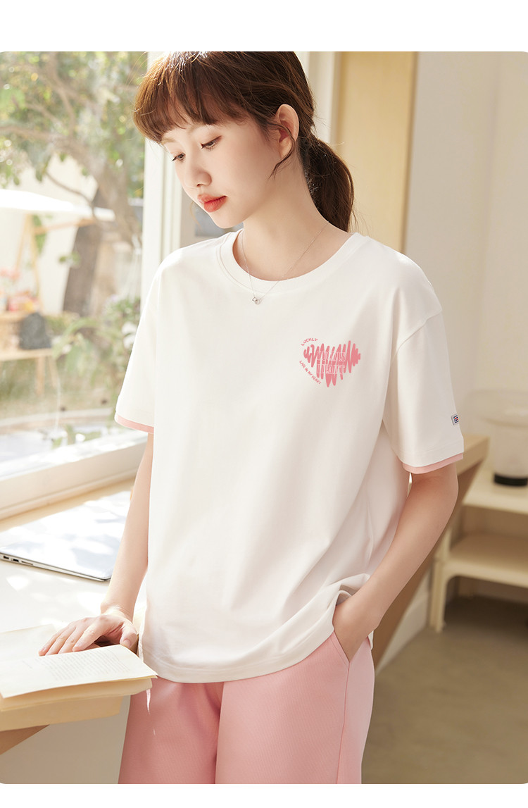 商品名称:米子旗夏季圆领线条爱心印花T恤女袖口撞色简约宽松短袖上衣 962458
