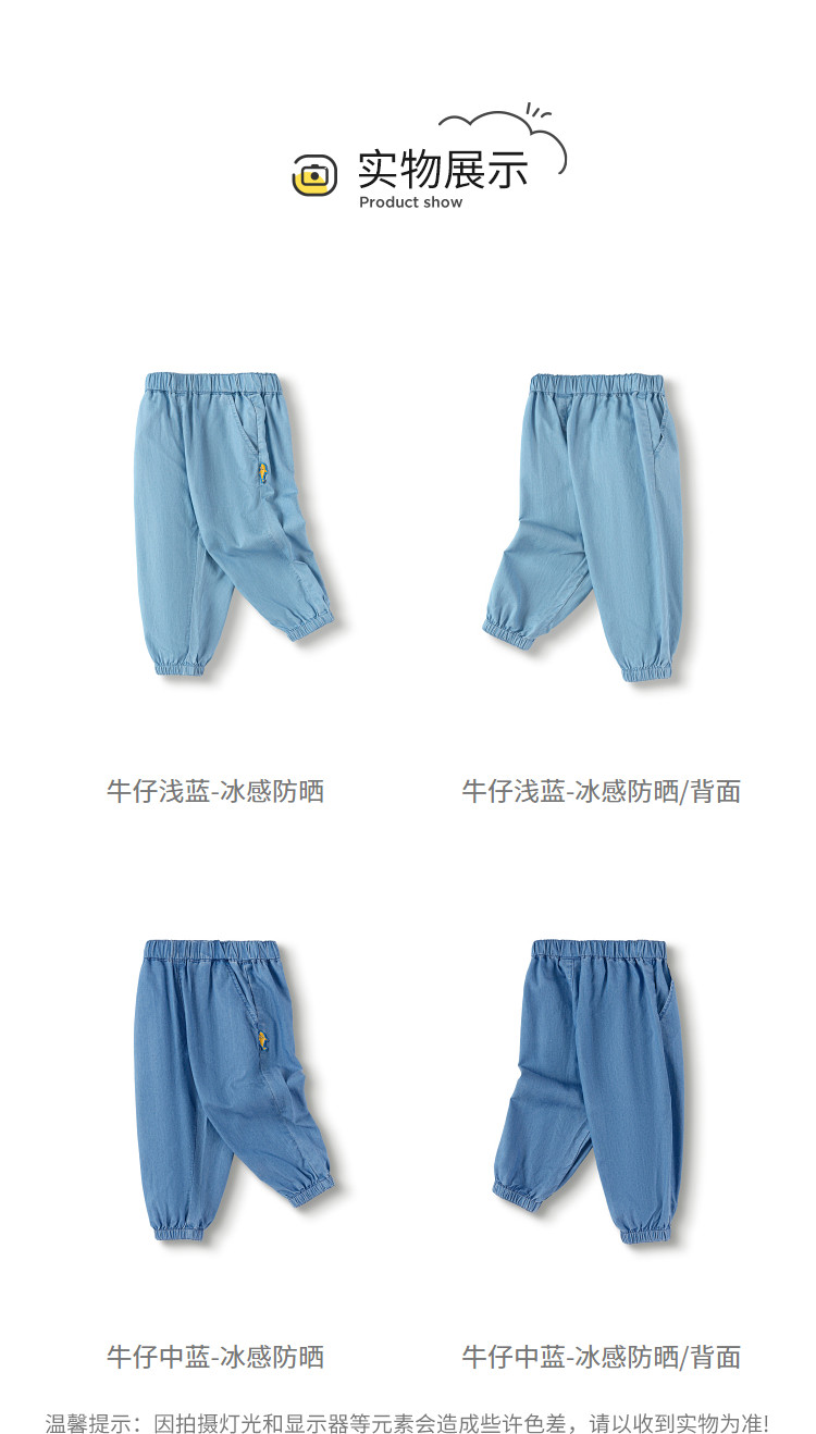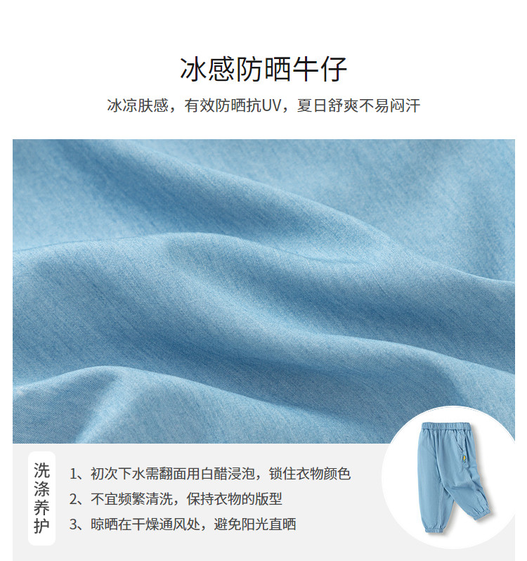 商品名称:冰感防晒轻薄防蚊裤儿童裤子童装男童女童夏季牛仔裤 999301