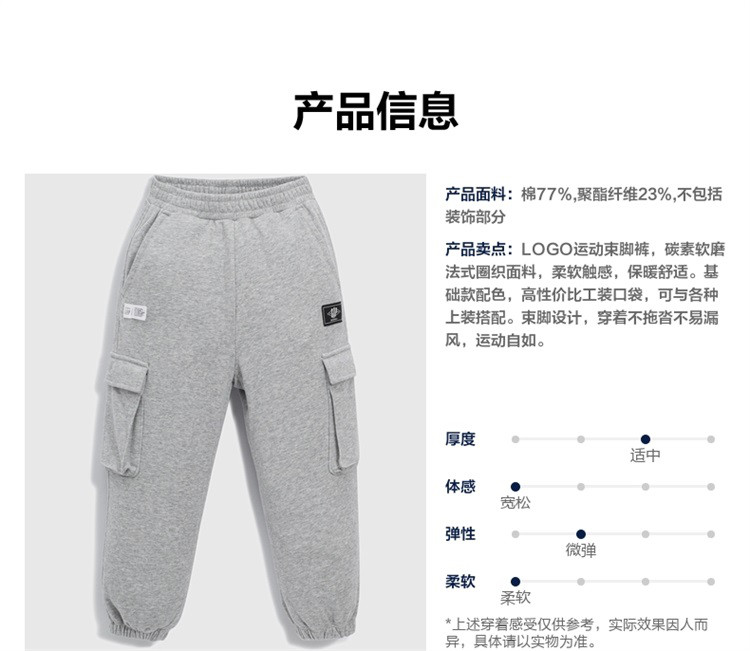 商品名称:Gap男幼春夏款LOGO法式圈织软卫裤儿童装运动时髦束脚裤836573 799386