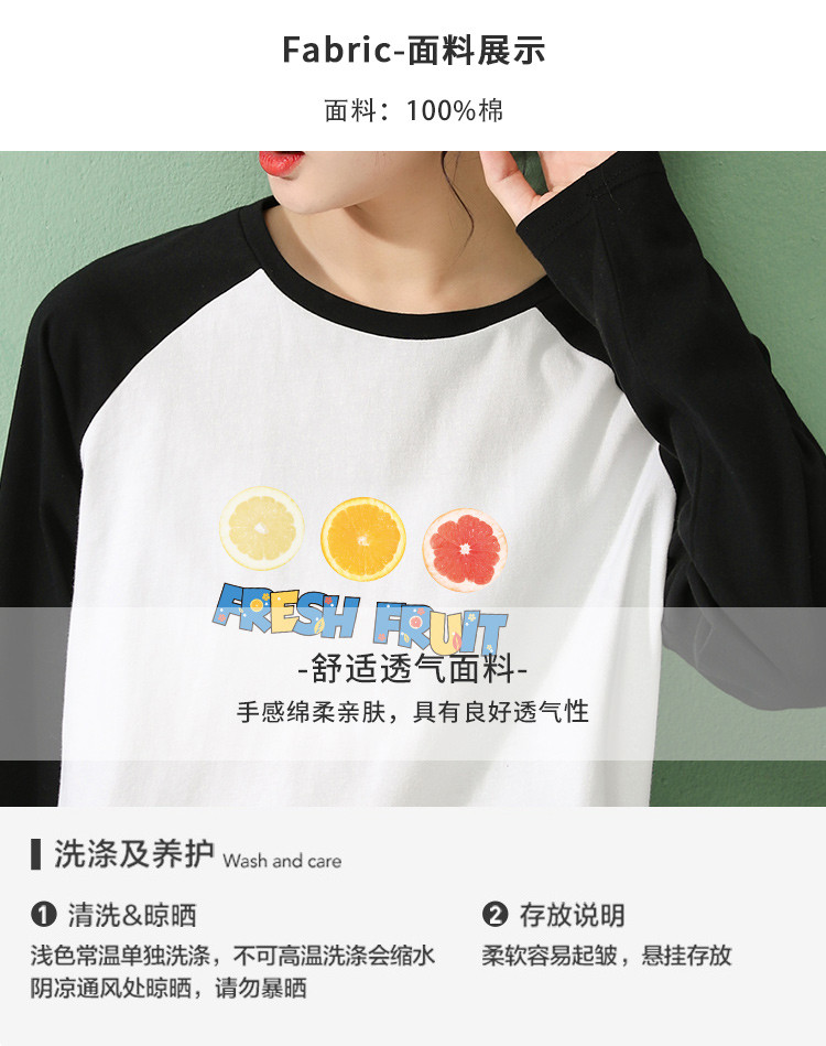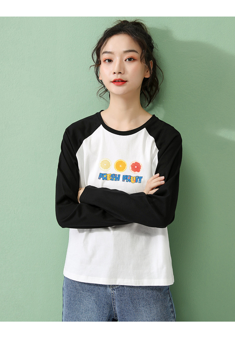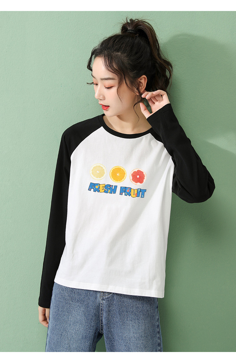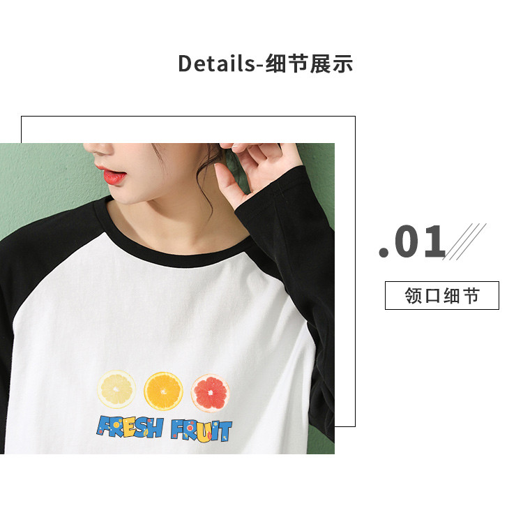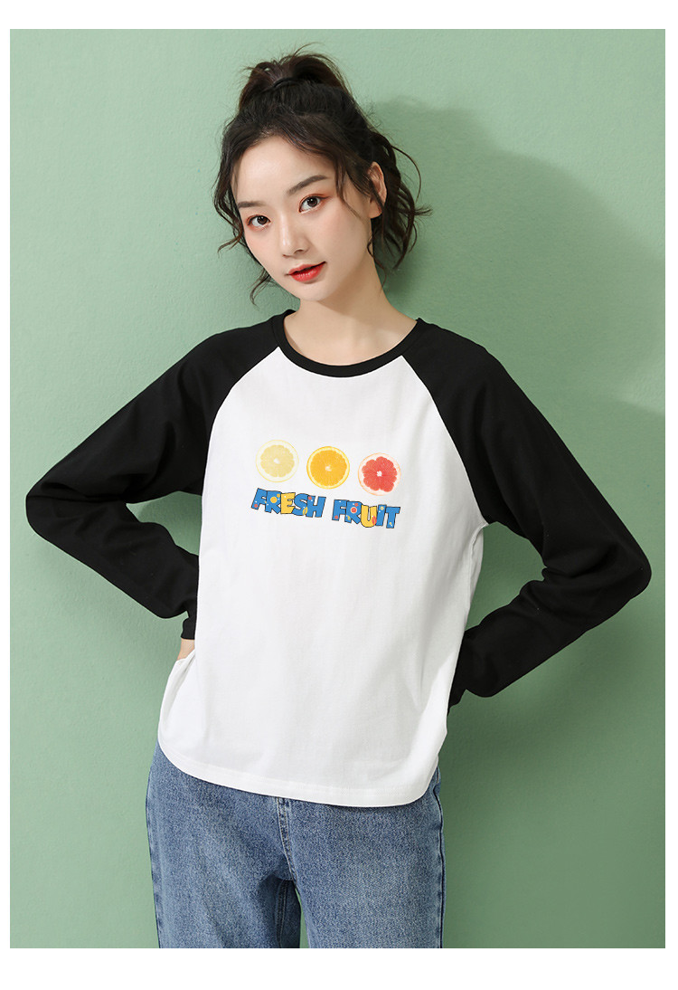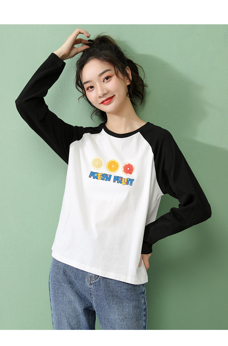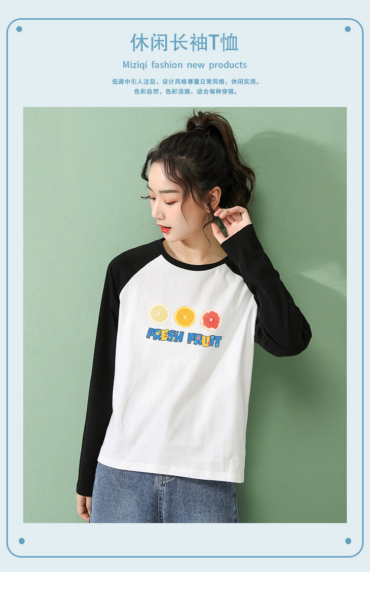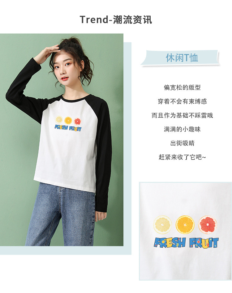 商品名称:米子旗春秋季圆领创意印花女式T恤插肩袖设计宽松长袖上衣 258074