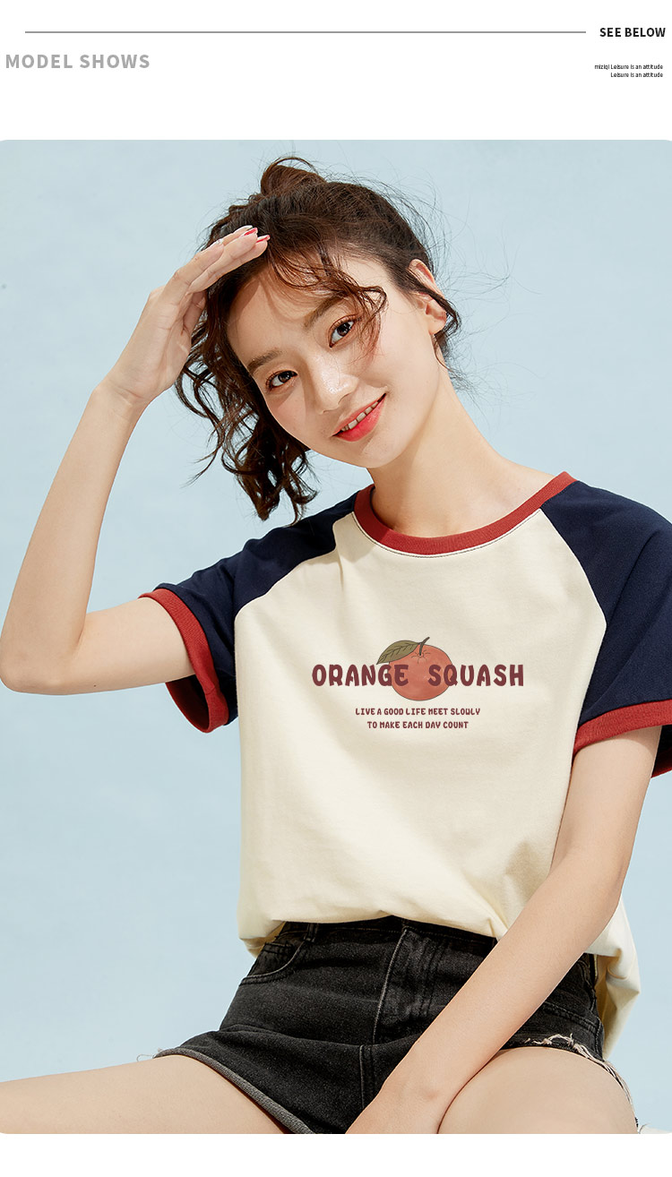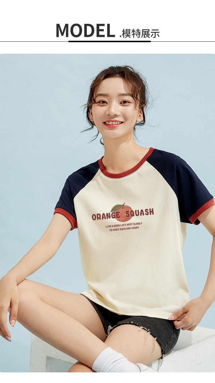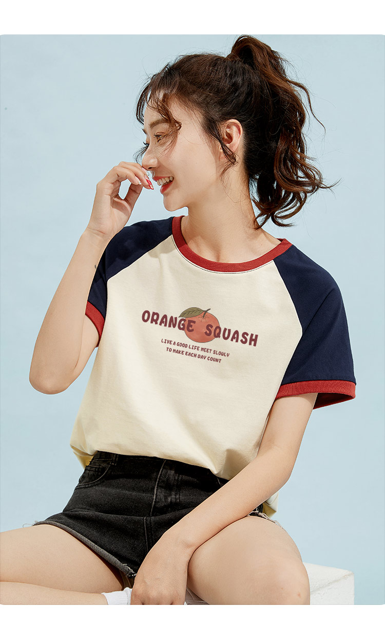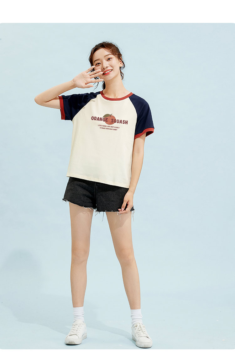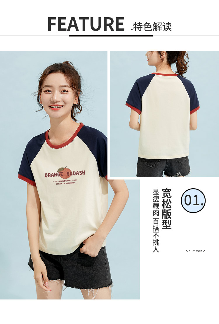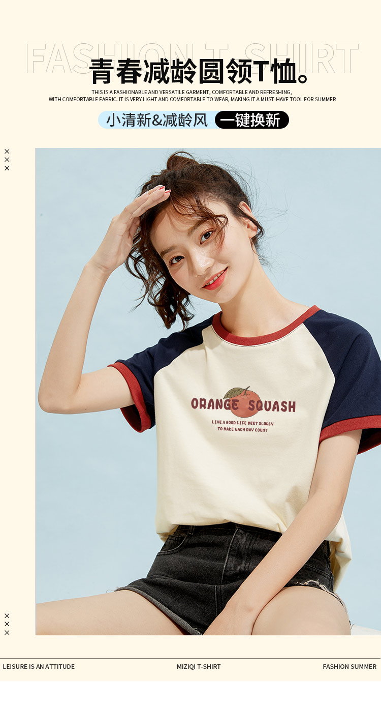 商品名称:米子旗夏季圆领创意印花女式T恤插肩袖设计宽松休闲短袖上衣 331226
