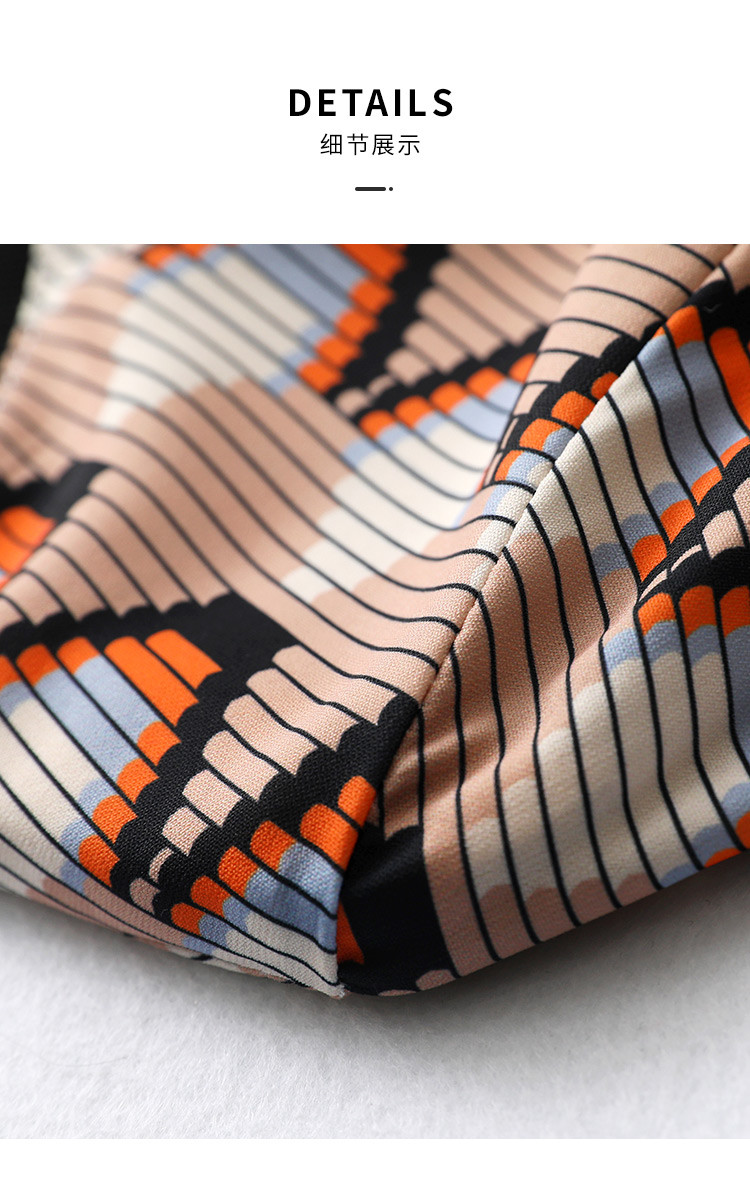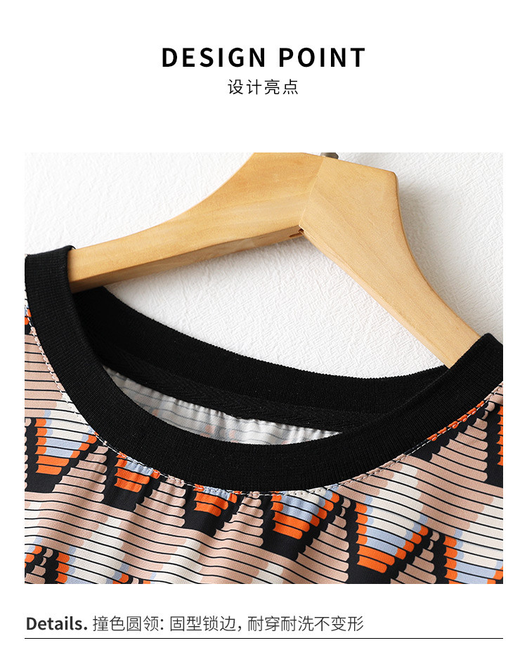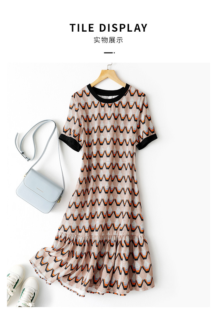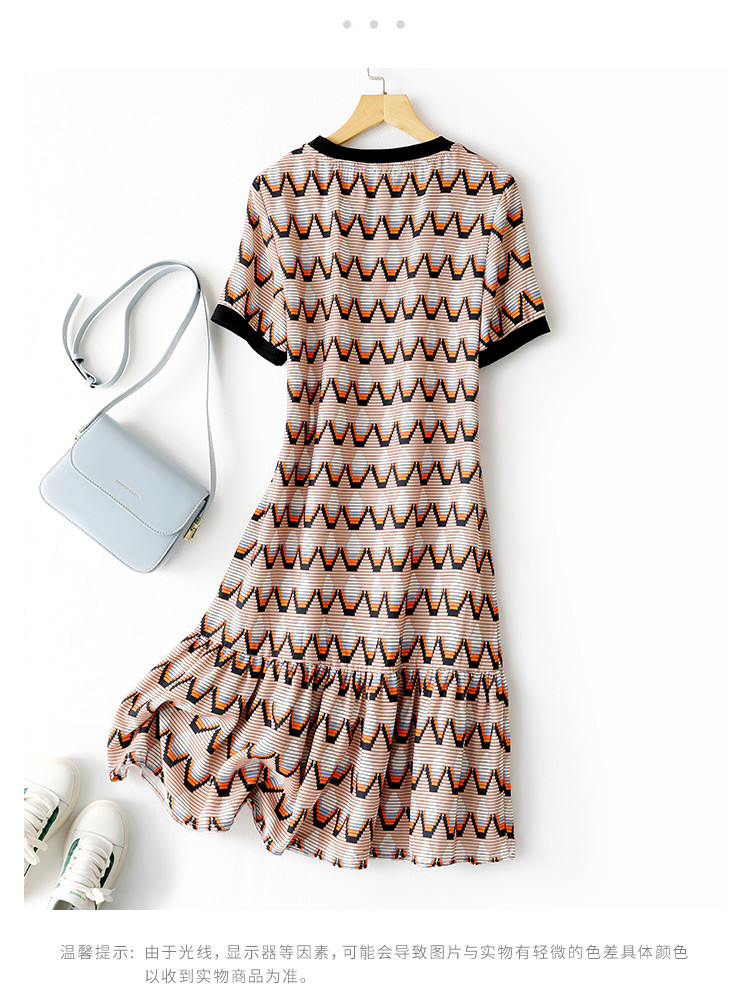 商品名称:几何撞色印花连衣裙2025夏季新款小众设计感宽松显瘦气质通勤 741385