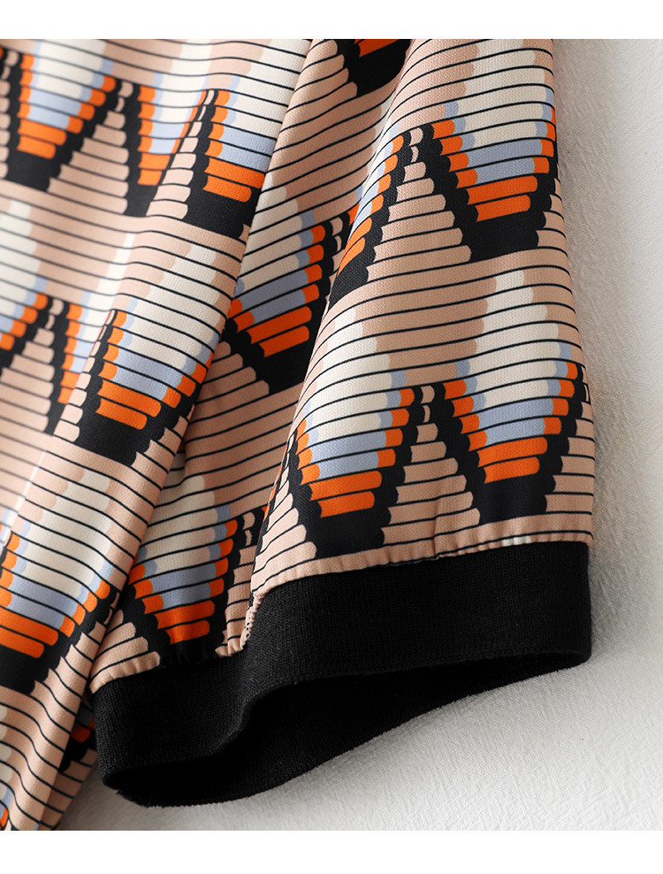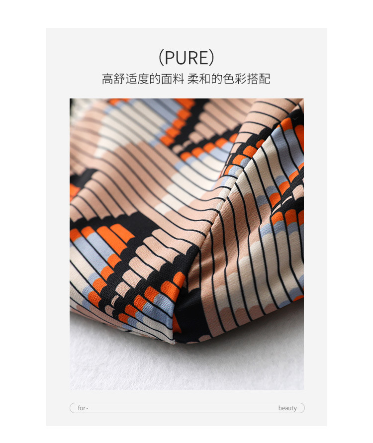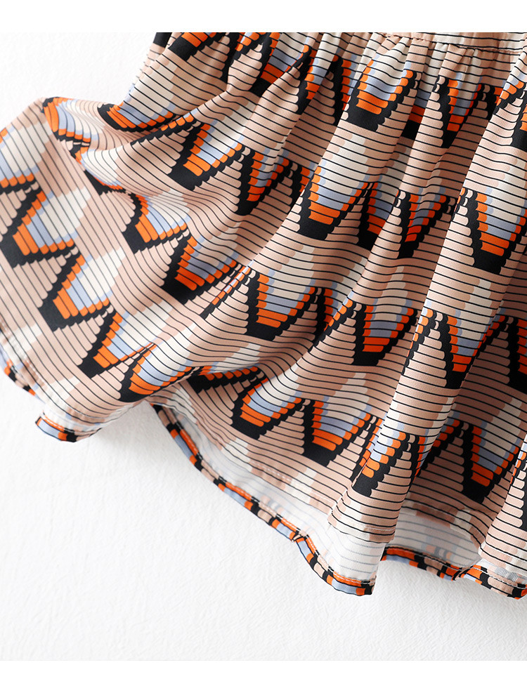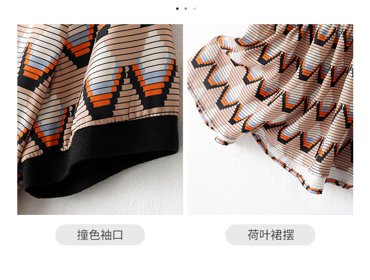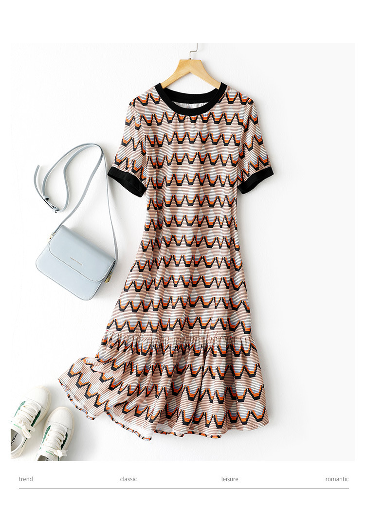 商品名称:几何撞色印花连衣裙2025夏季新款小众设计感宽松显瘦气质通勤 741385