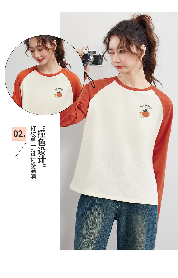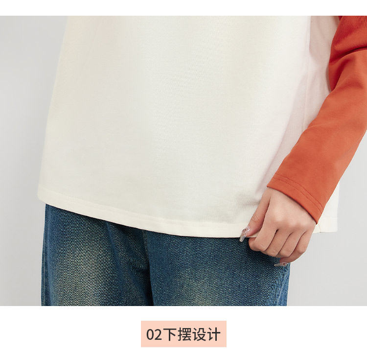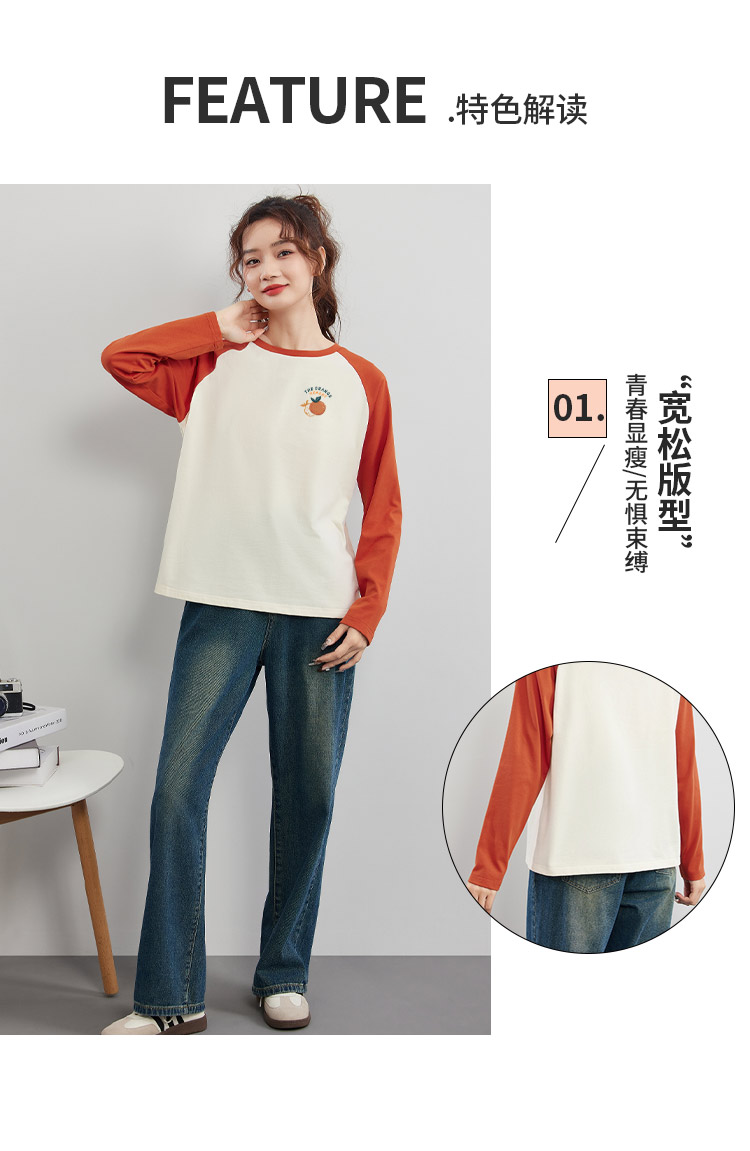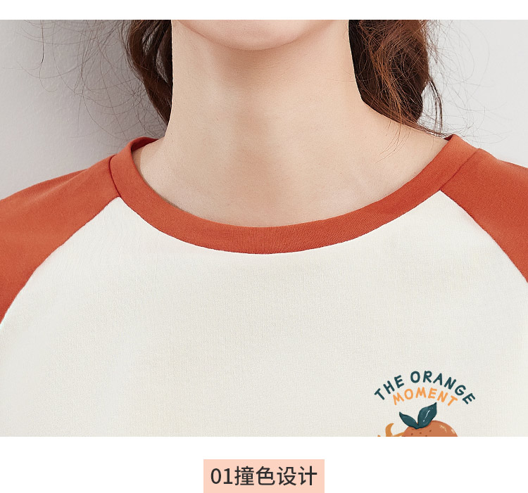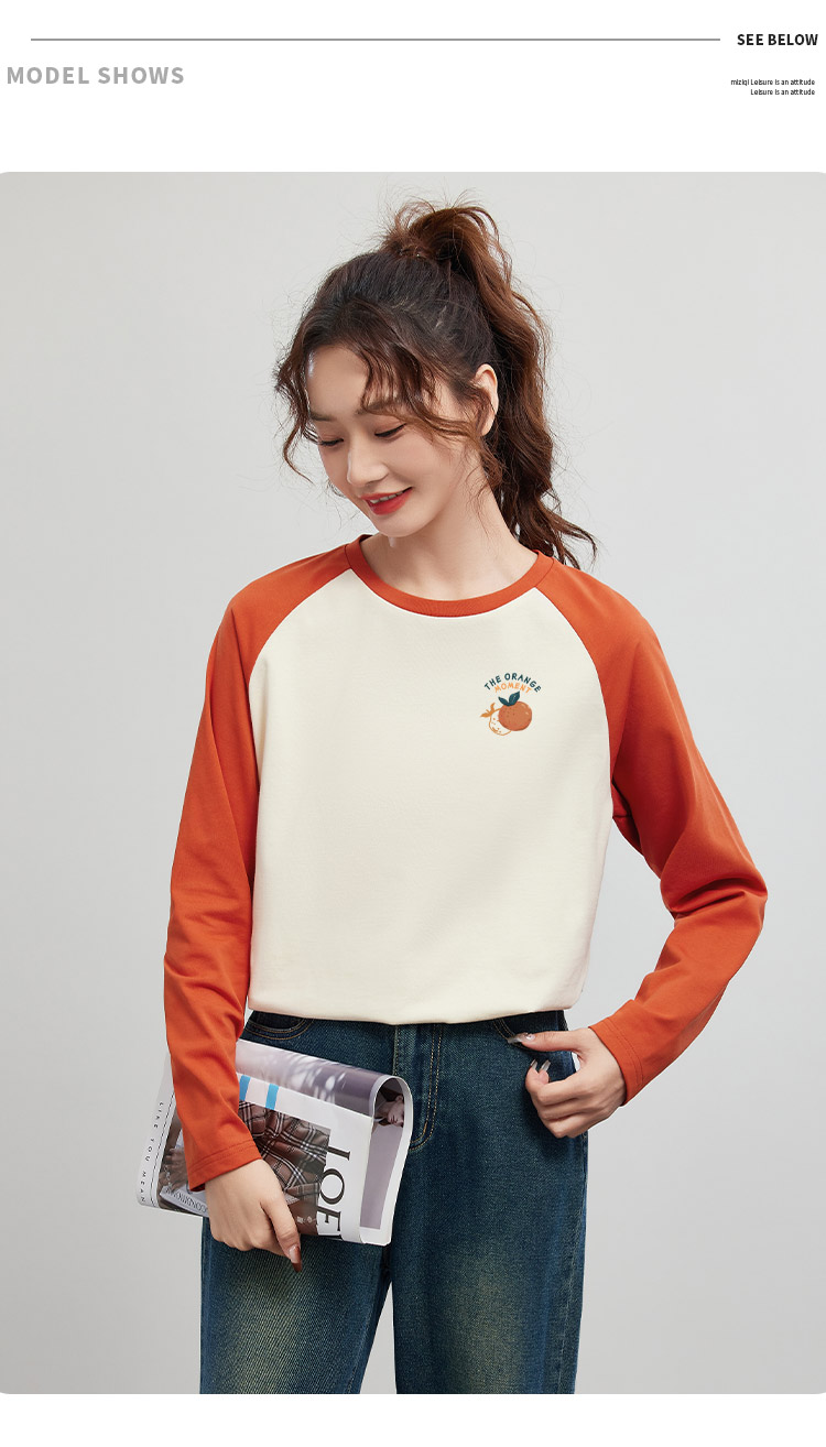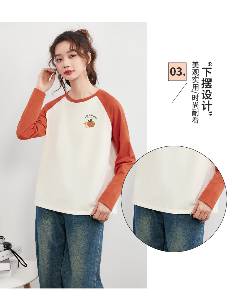 商品名称:米子旗夏季圆领印花女式T恤插肩袖撞色设计宽松休闲长袖上衣 027162