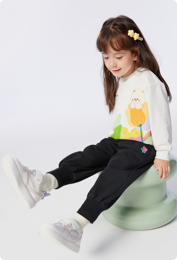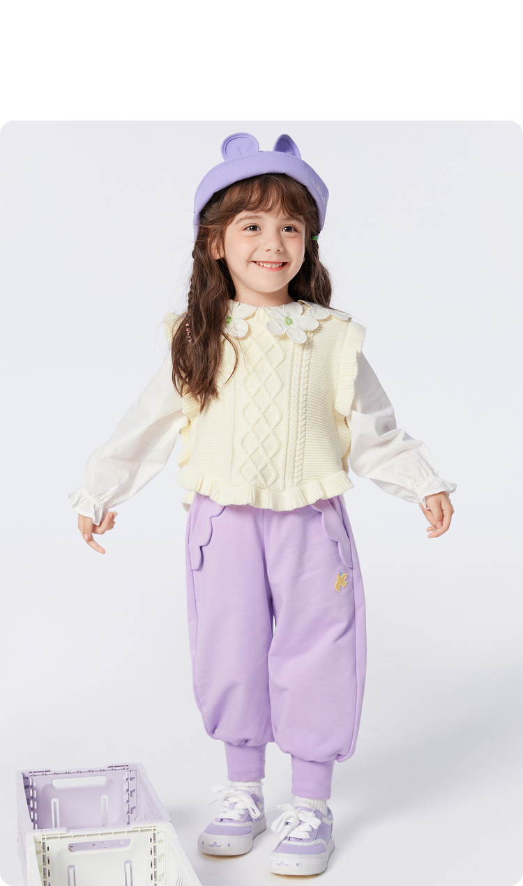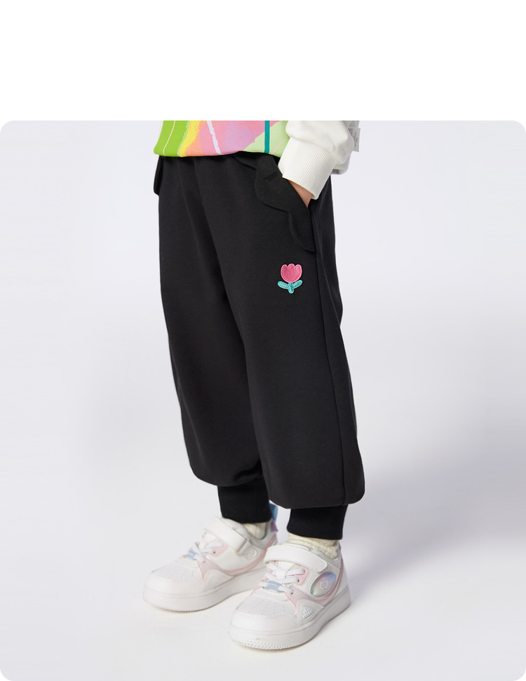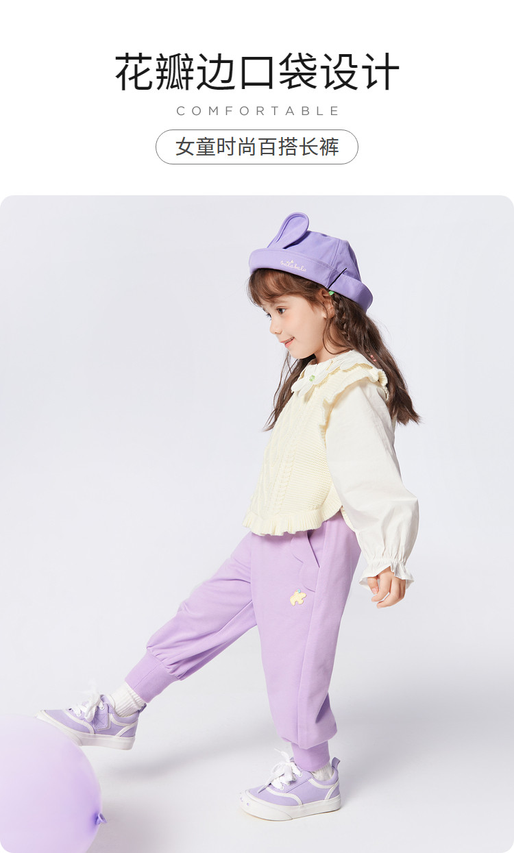 宽松束脚儿童长裤童装女童裤子春秋小童宝可爱花边 246341