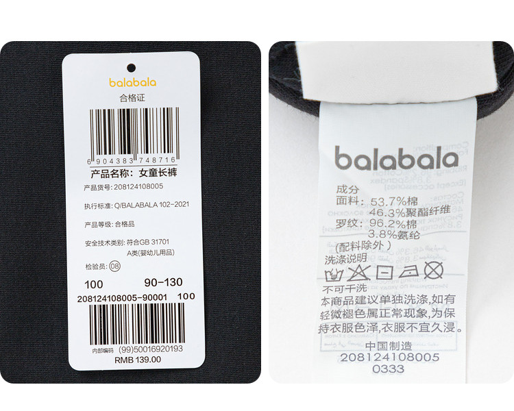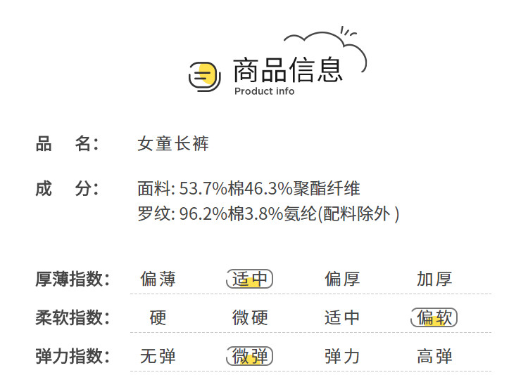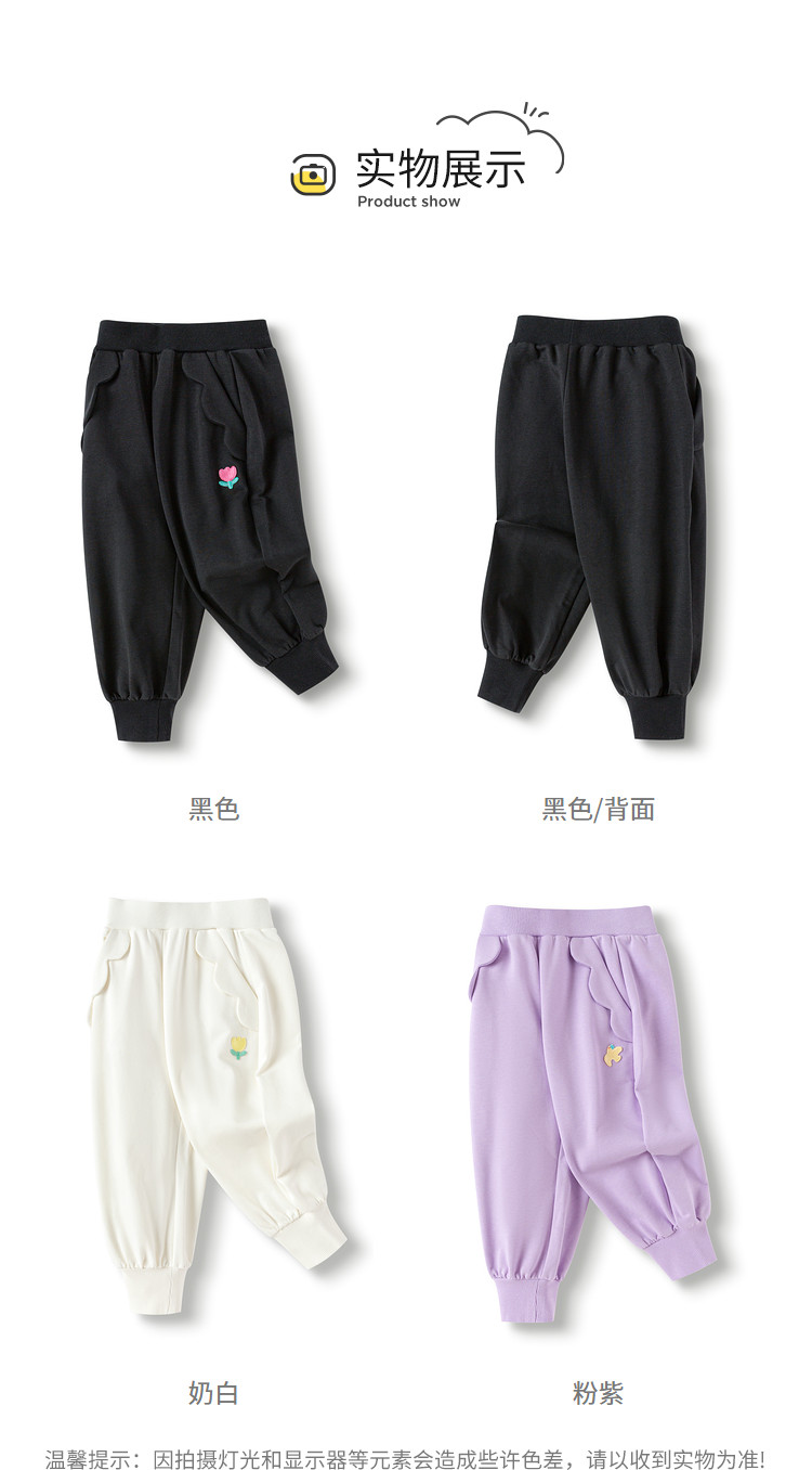 商品名称:宽松束脚儿童长裤童装女童裤子春秋小童宝可爱花边 246341