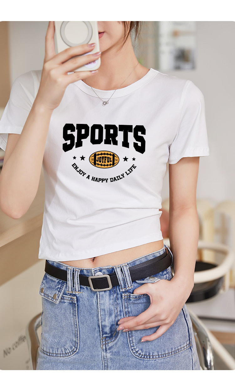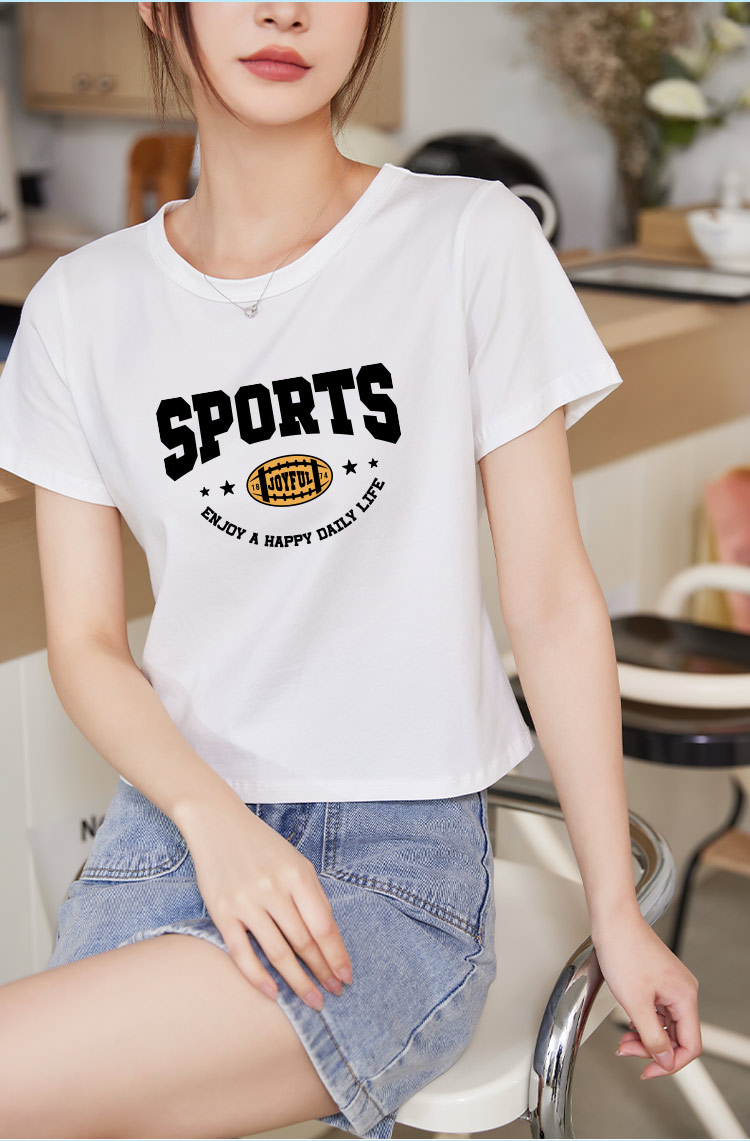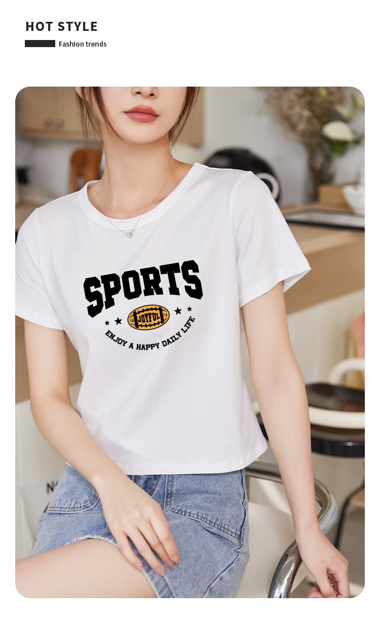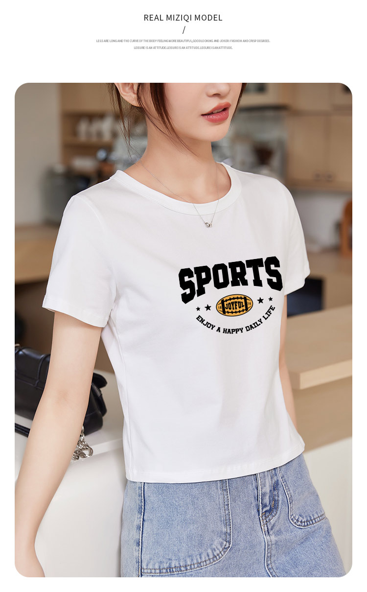 商品名称:米子旗夏季圆领创意印花女式T恤短款修身简约显瘦短袖上衣 512410