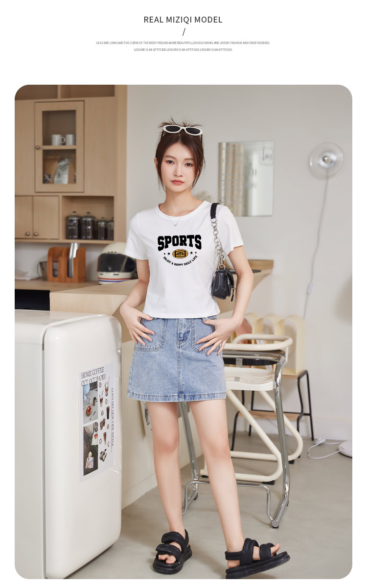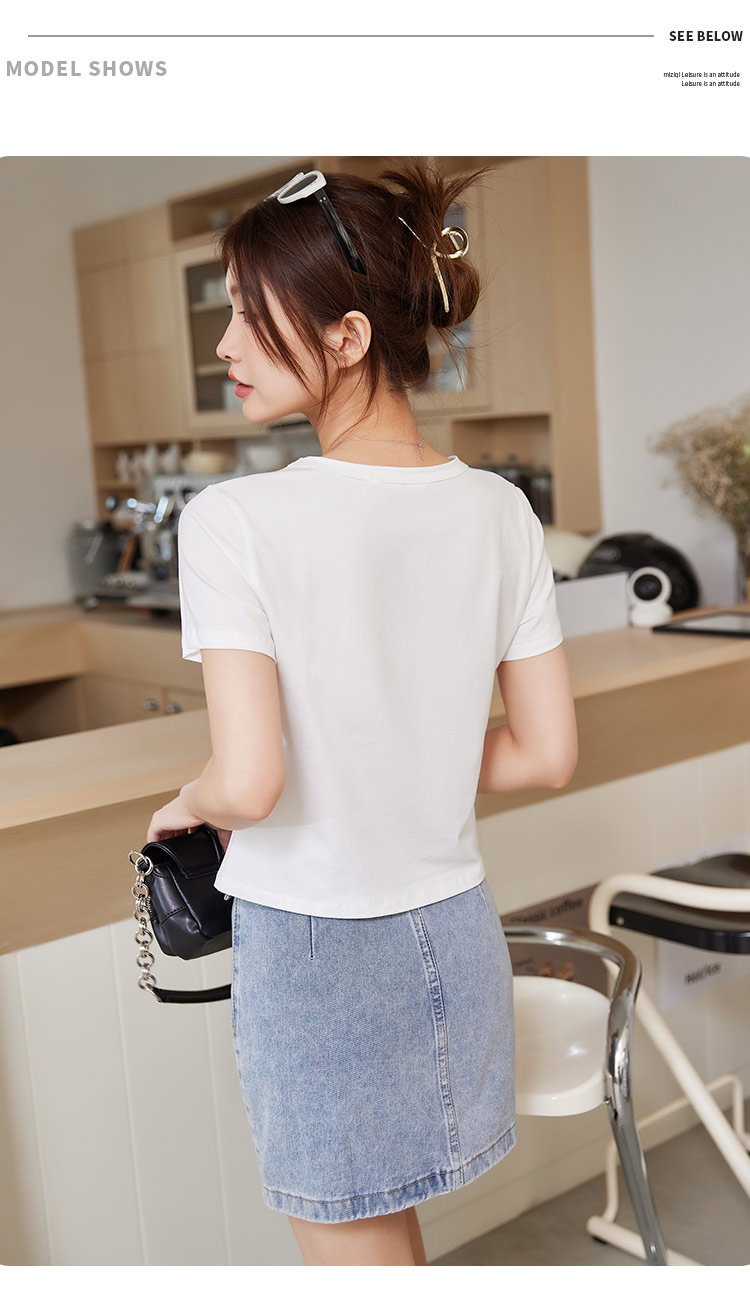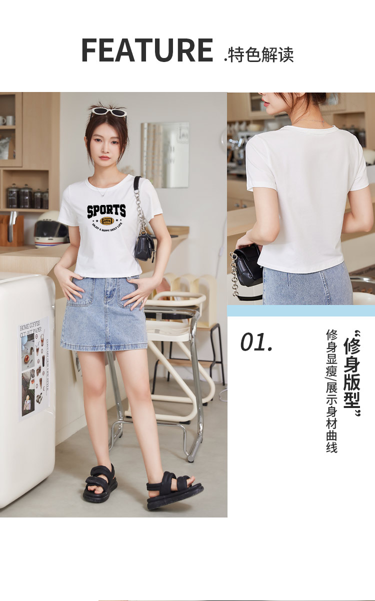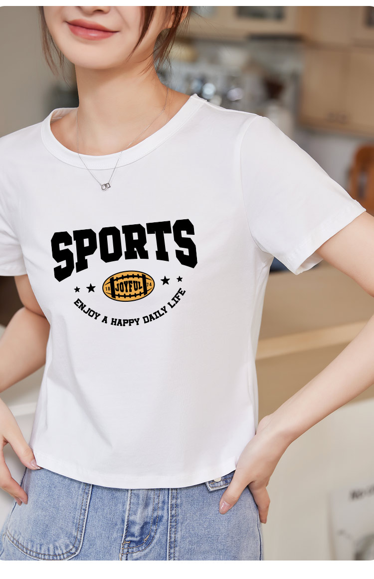 商品名称:米子旗夏季圆领创意印花女式T恤短款修身简约显瘦短袖上衣 512410