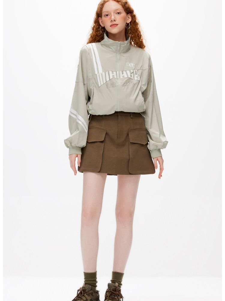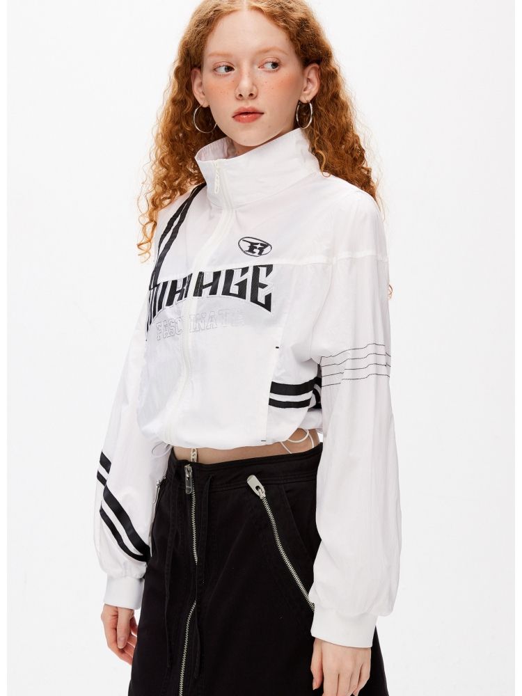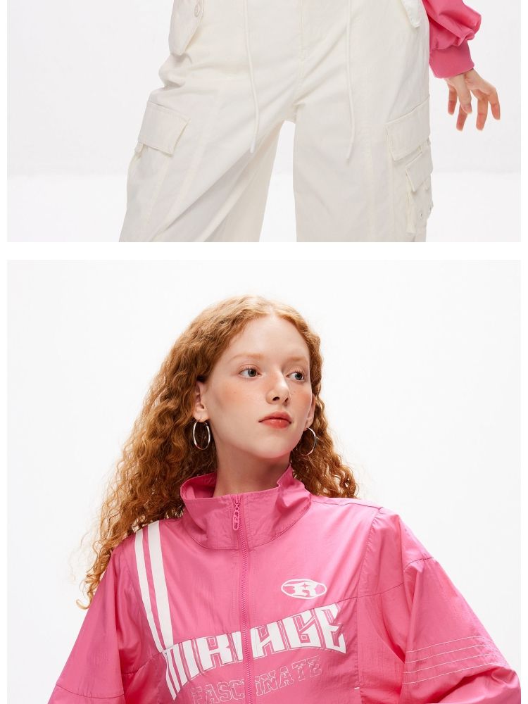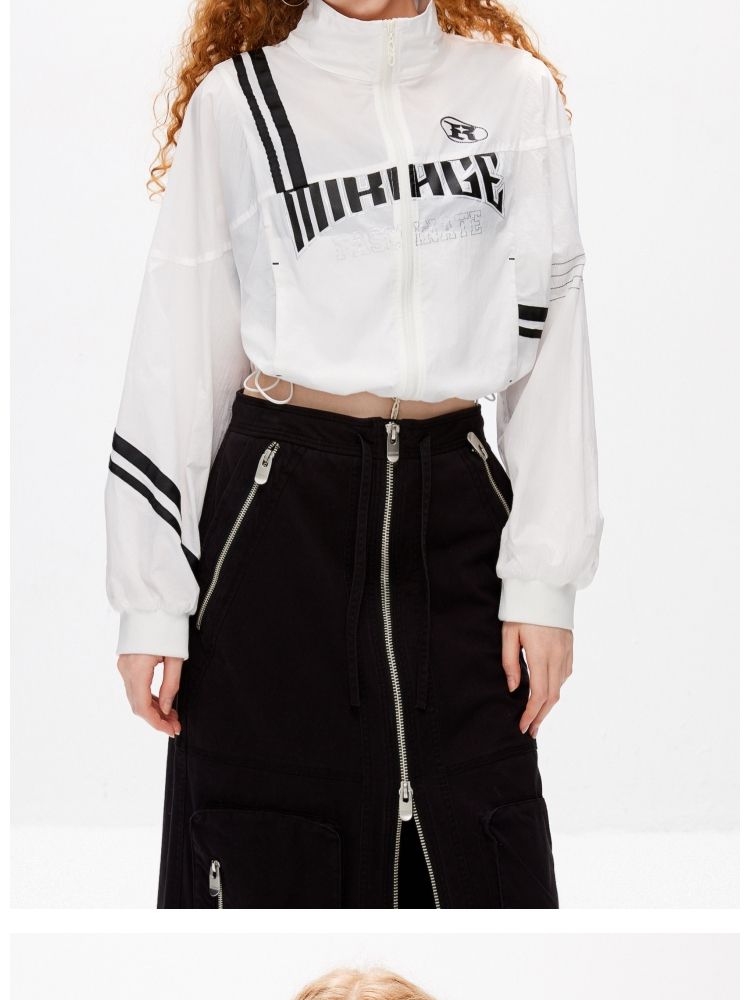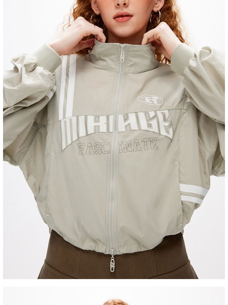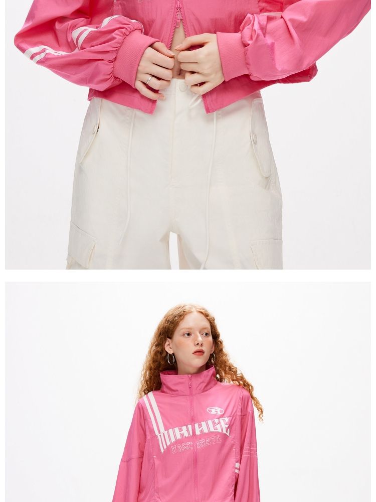 【休闲运动风】夏季宽松立领拼接轻薄外套女 045082