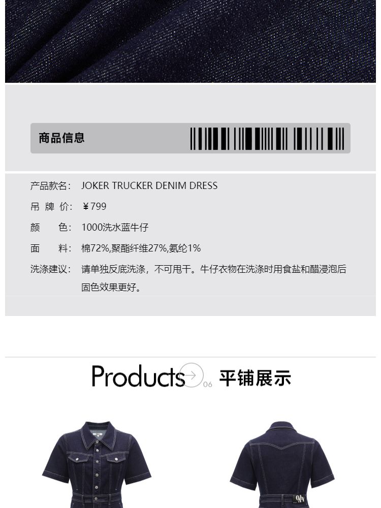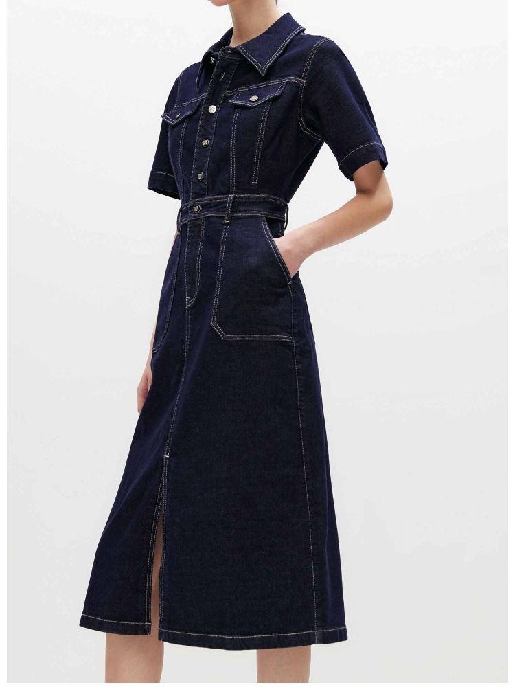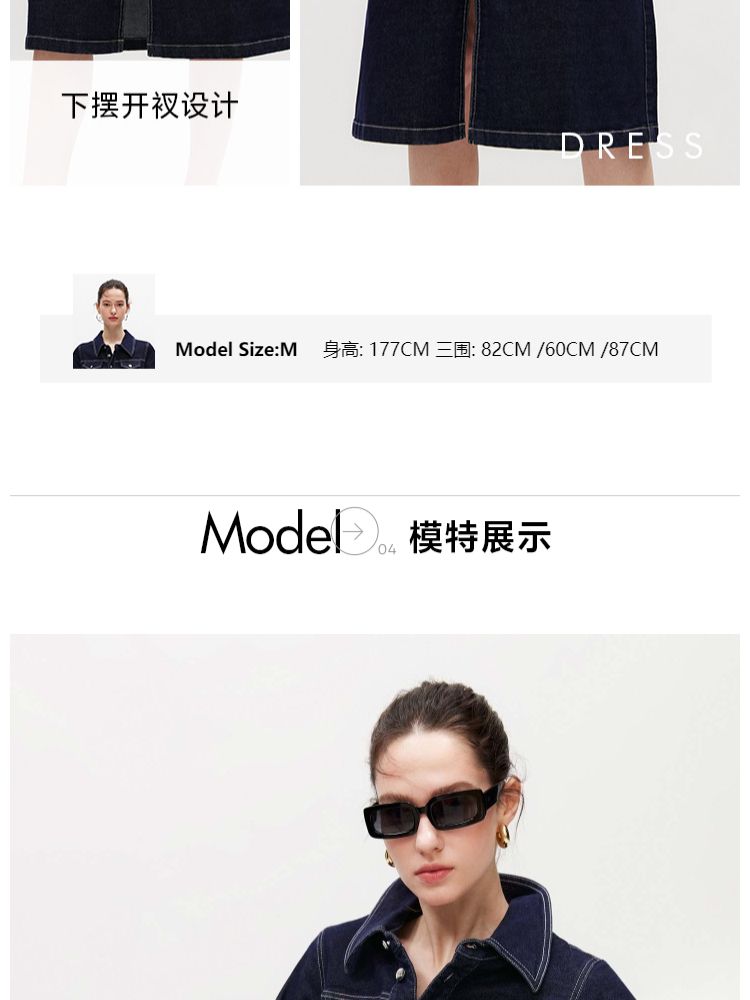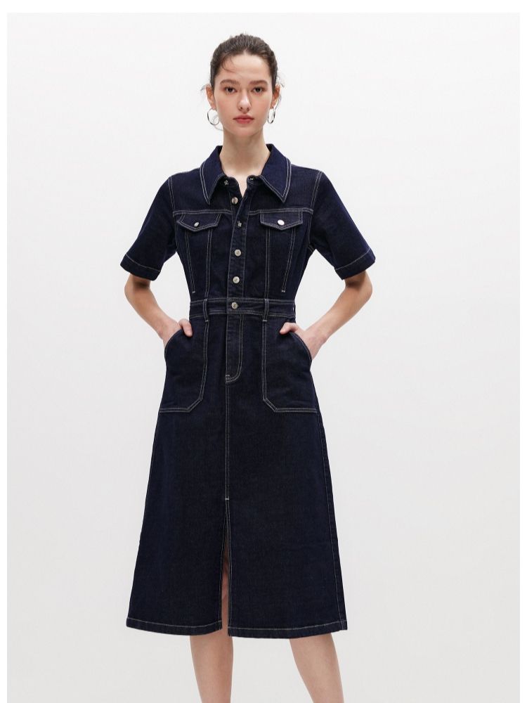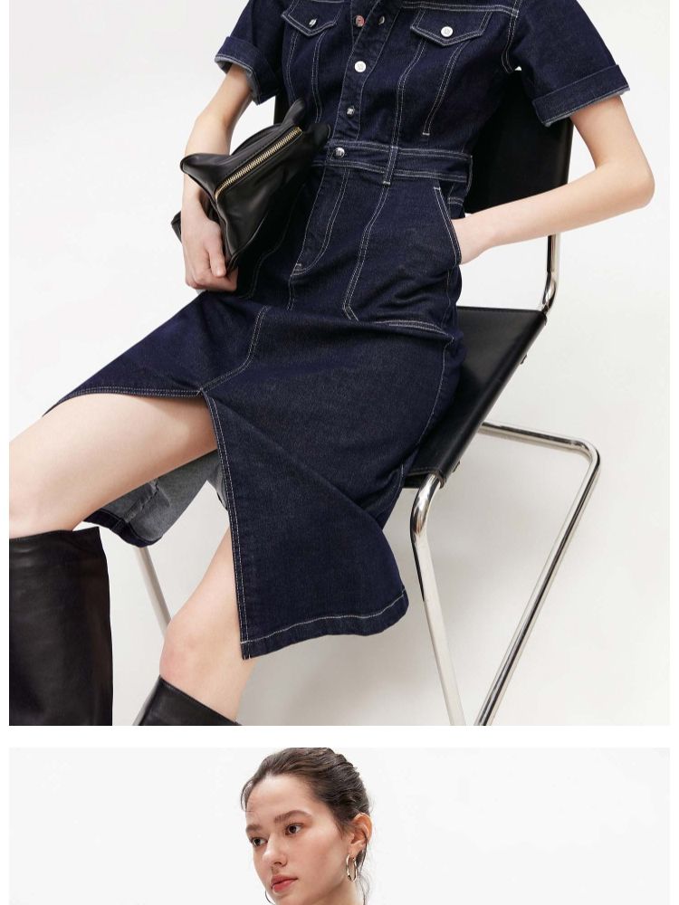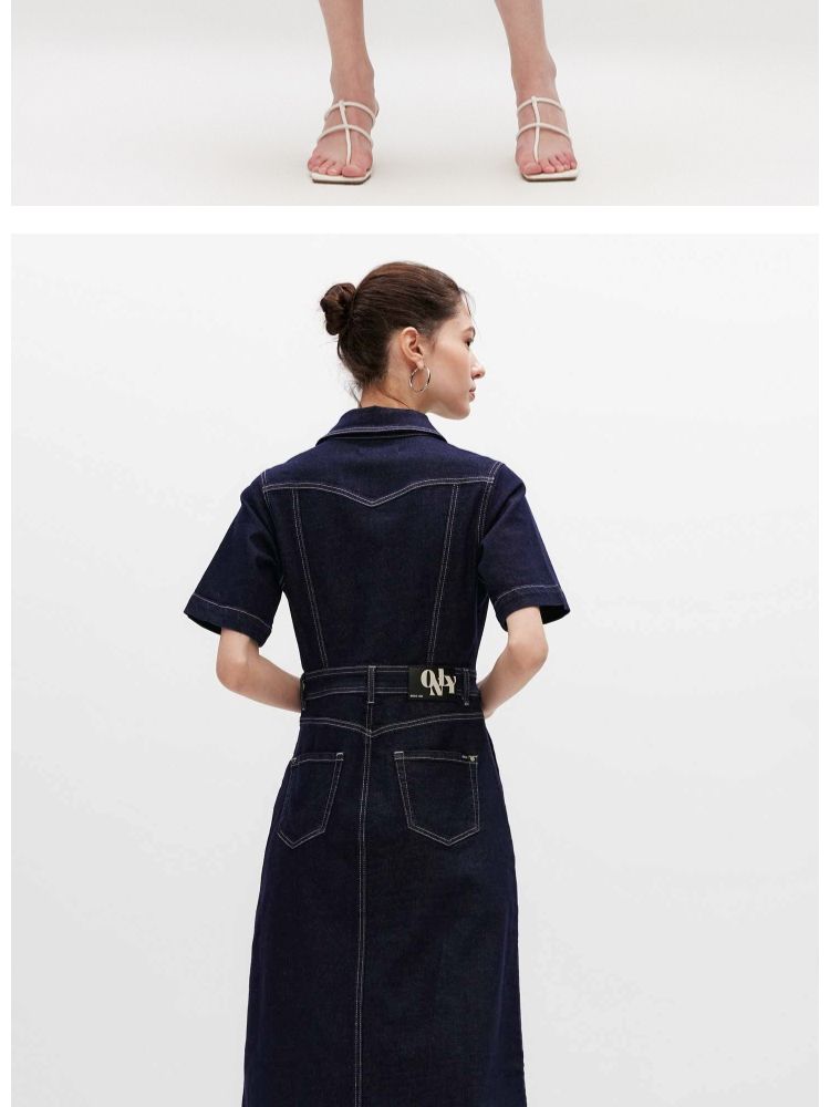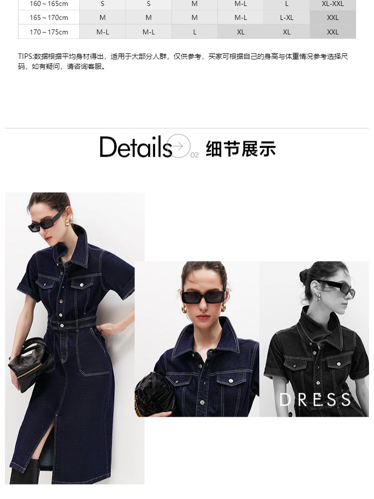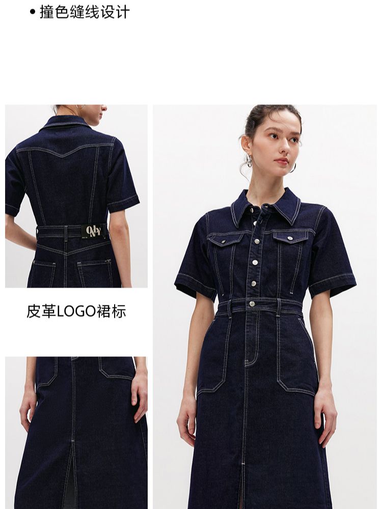 商品名称:【高腰剪裁修饰比例】25夏季复古翻领修身短袖牛仔连衣裙女 300890