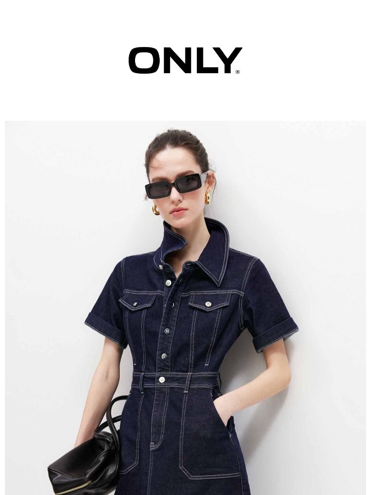 【高腰剪裁修饰比例】25夏季复古翻领修身短袖牛仔连衣裙女 300890