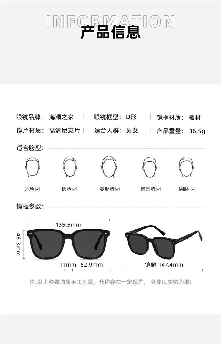 商品名称:太阳镜女黑超墨镜尼龙镜片不偏光男女通用眼镜大脸显瘦高级感百搭 258948