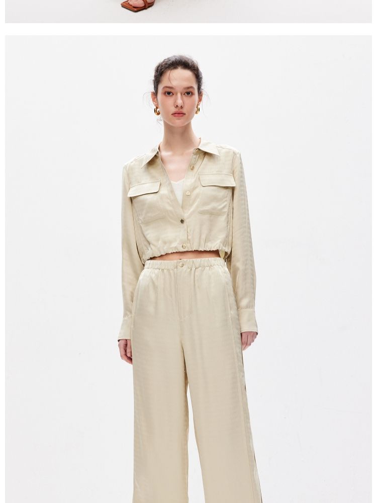 玖姿旗下安娜蔻系列简约OL风提花褶皱直筒长袖衬衫女秋季 879884