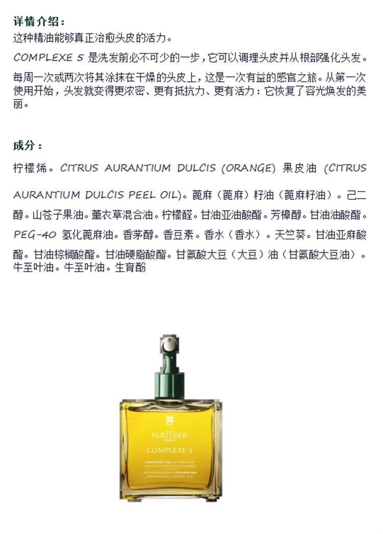 商品名称:Rene Furterer/馥绿德雅 Complexe 5赋活植物精华 50ml