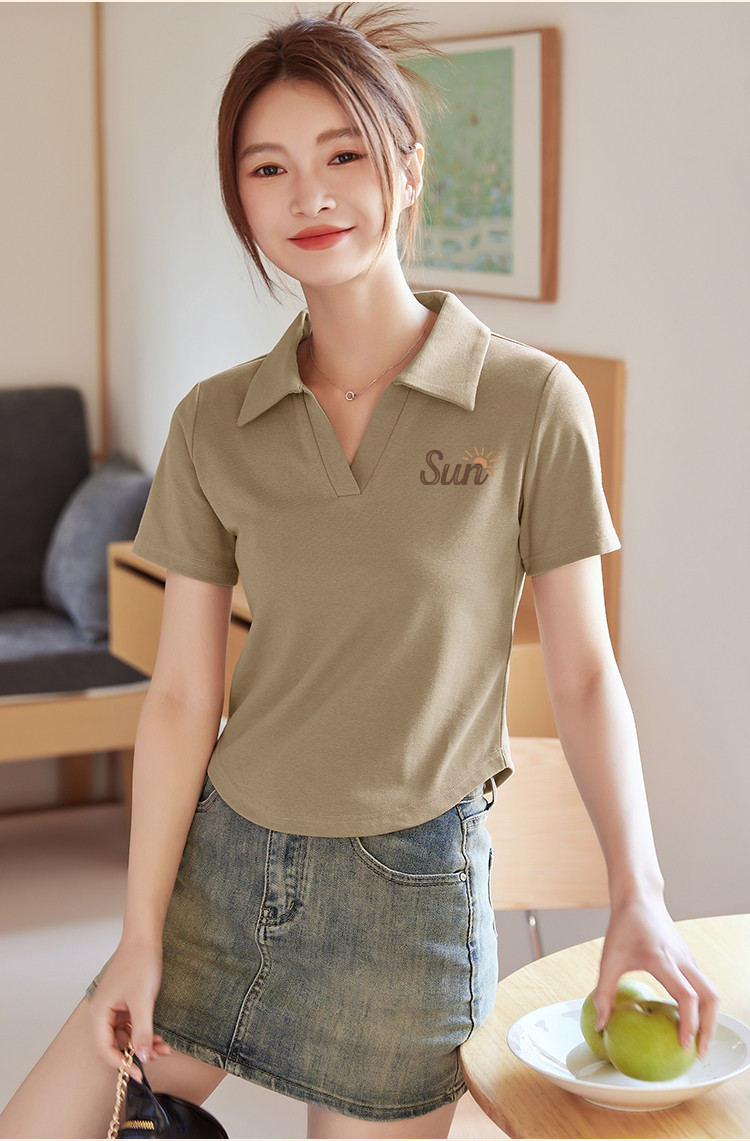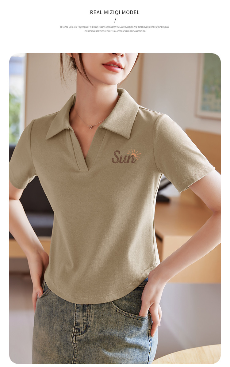 米子旗夏季Polo领字母T恤短款修身减龄小个子翻领短袖上衣 510042