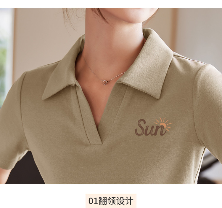 商品名称:米子旗夏季Polo领字母T恤短款修身减龄小个子翻领短袖上衣 510042
