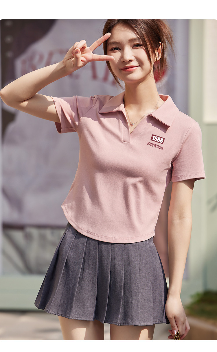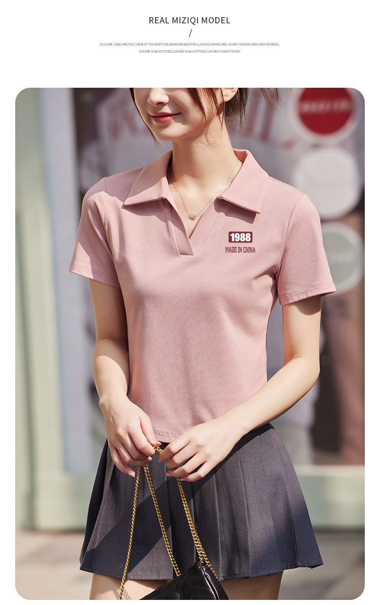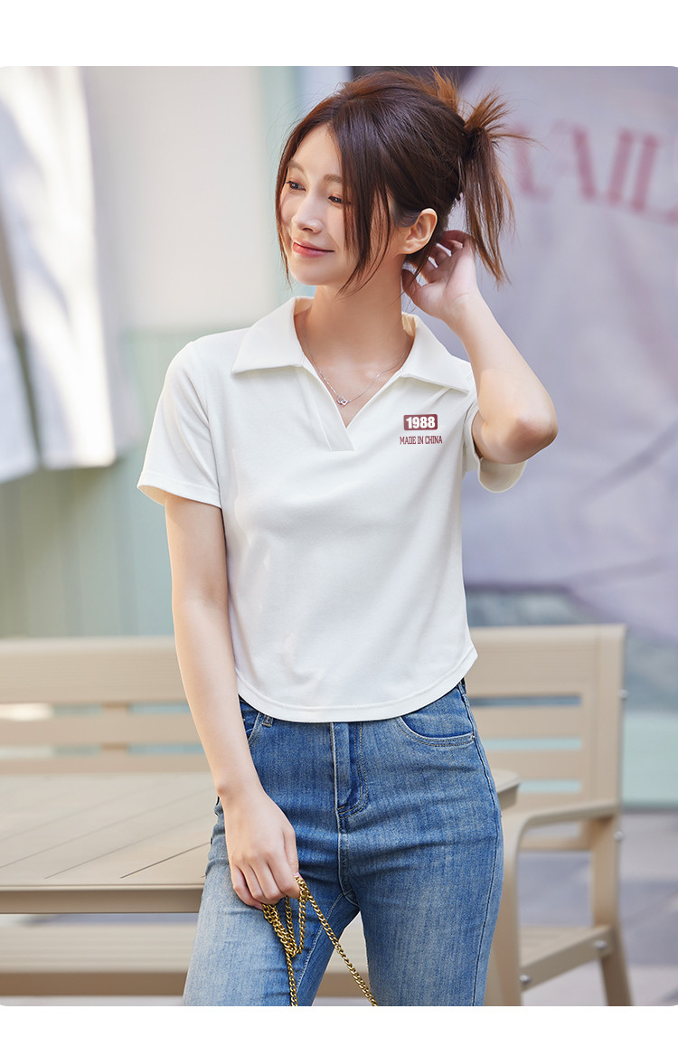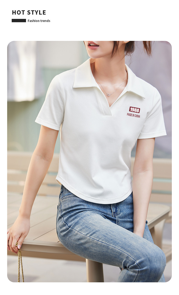 商品名称:米子旗夏装款polo领印花T恤女短款修身短袖上衣 654106