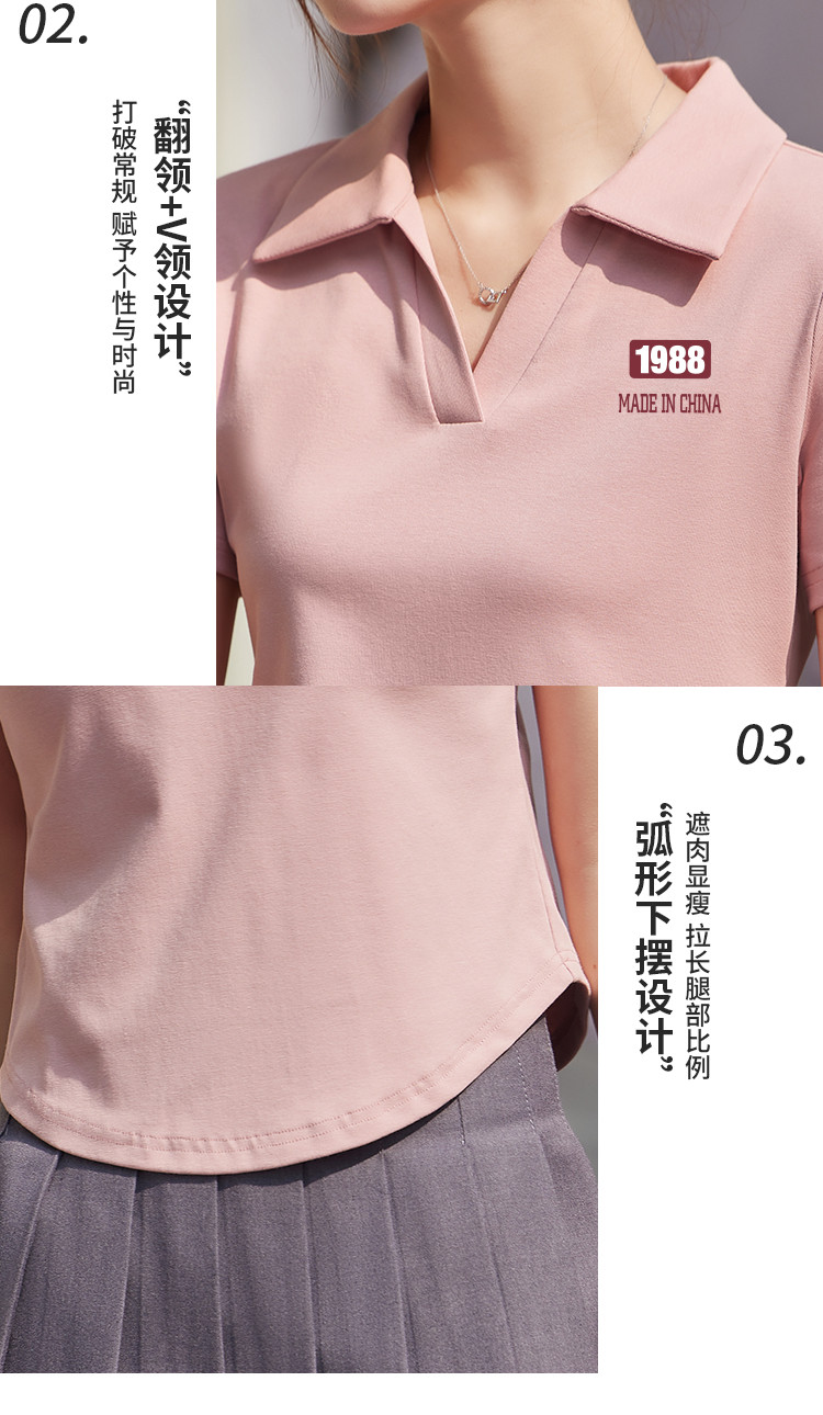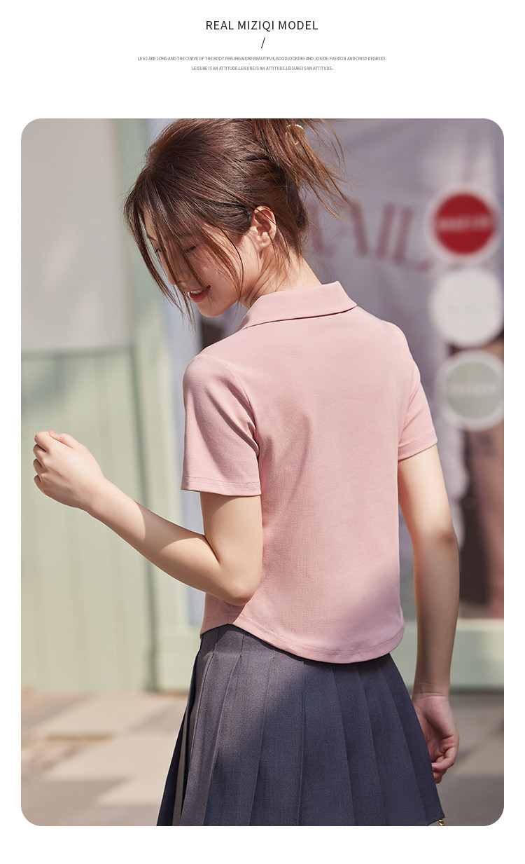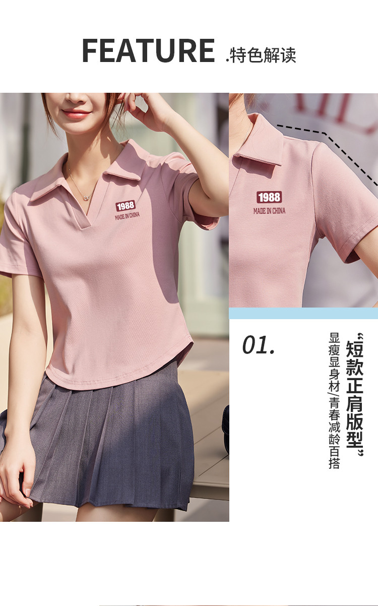 商品名称:米子旗夏装款polo领印花T恤女短款修身短袖上衣 654106