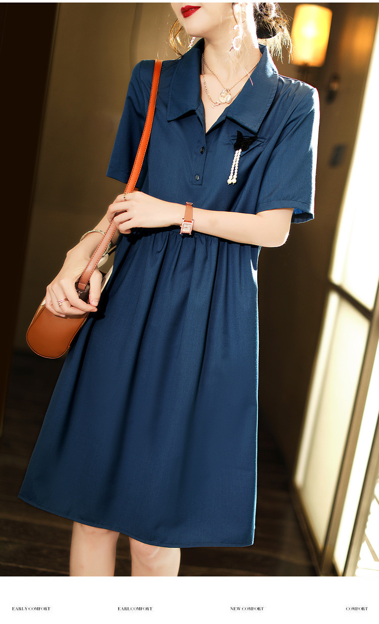 商品名称:【断码捡漏】2024年夏季减龄学院风抽褶显瘦A字大码连衣裙 139273