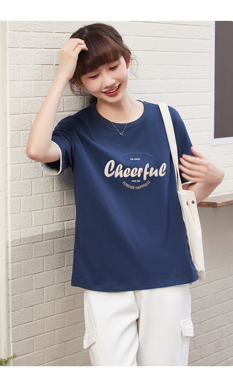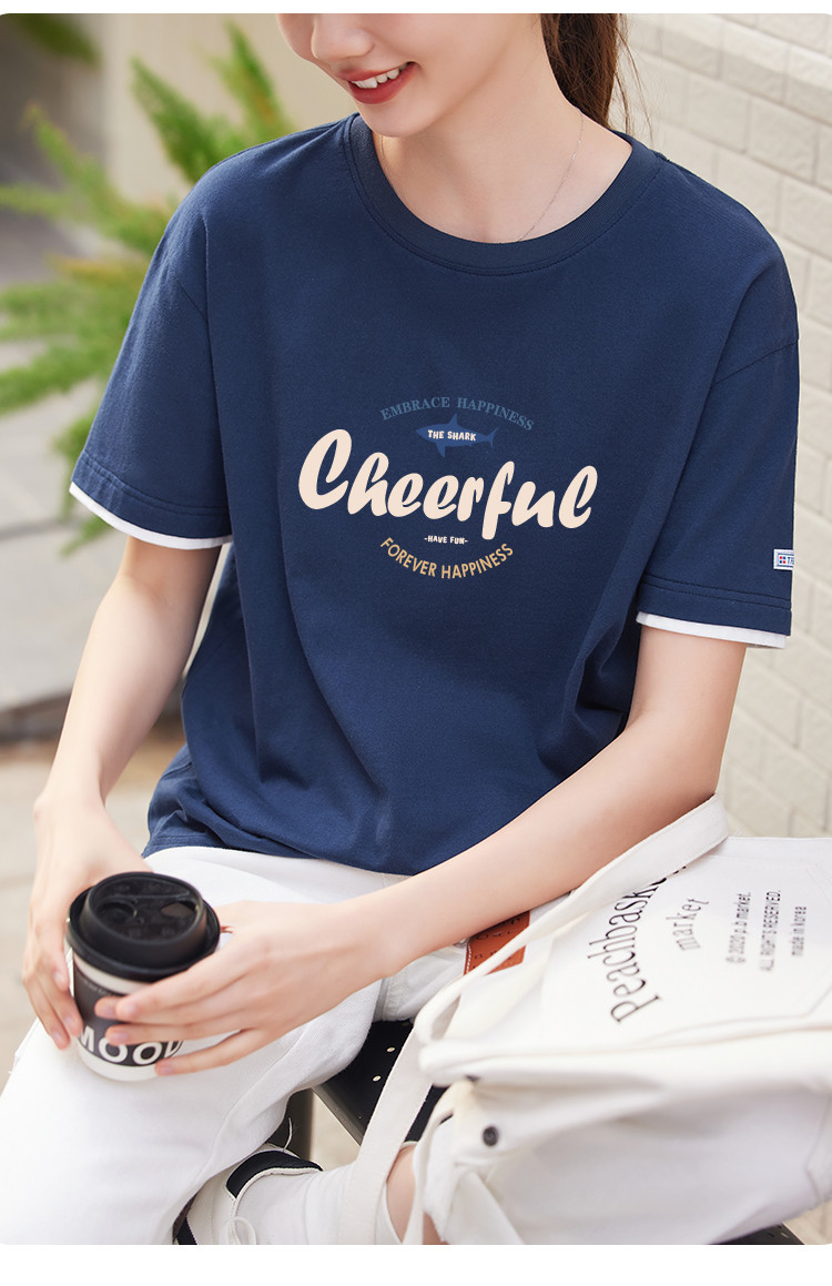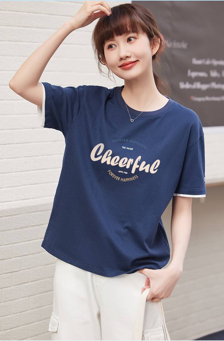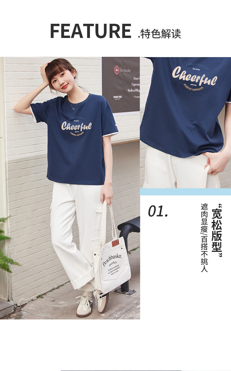 商品名称:米子旗夏季圆领创意印花T恤女袖口撞色设计宽松休闲短袖上衣 089626