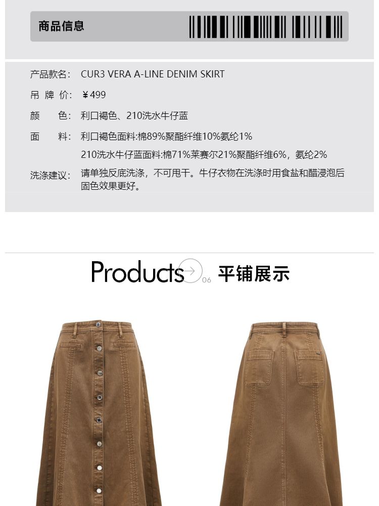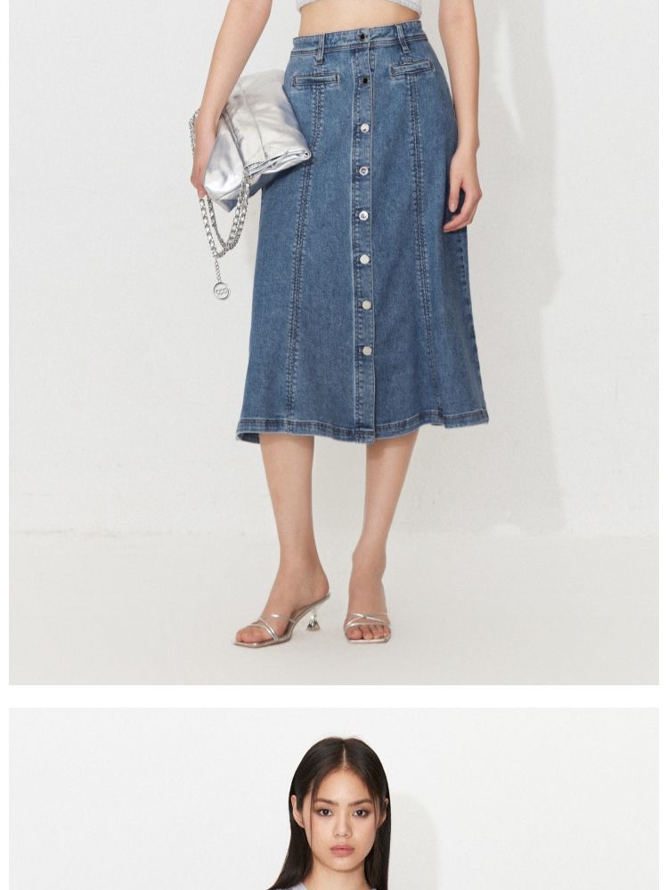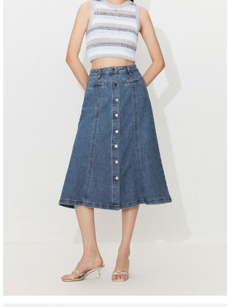 商品名称:【时尚休闲】夏季显瘦A字中长款牛仔半身裙女 241818