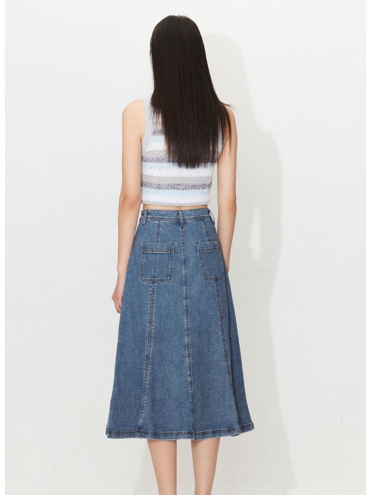 【时尚休闲】夏季显瘦A字中长款牛仔半身裙女 241818