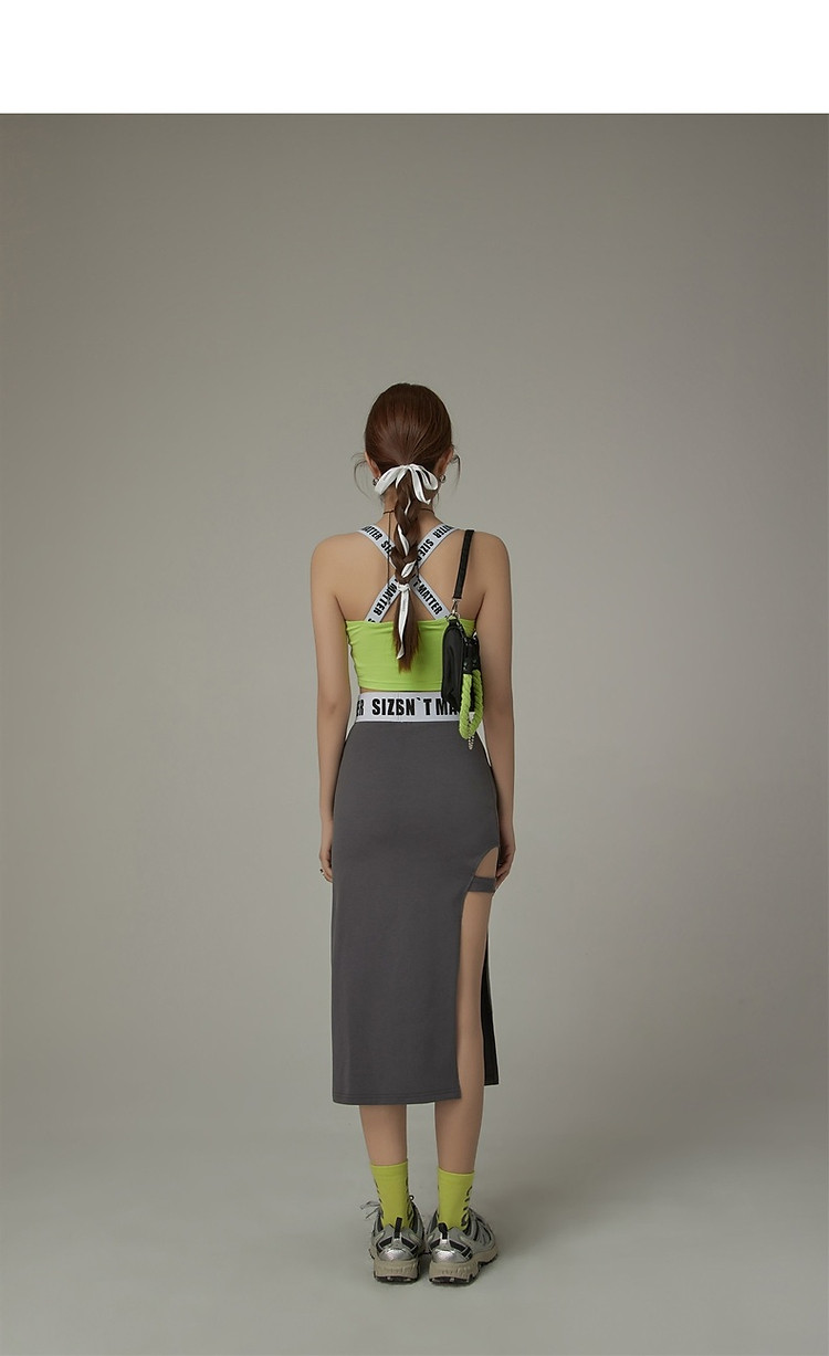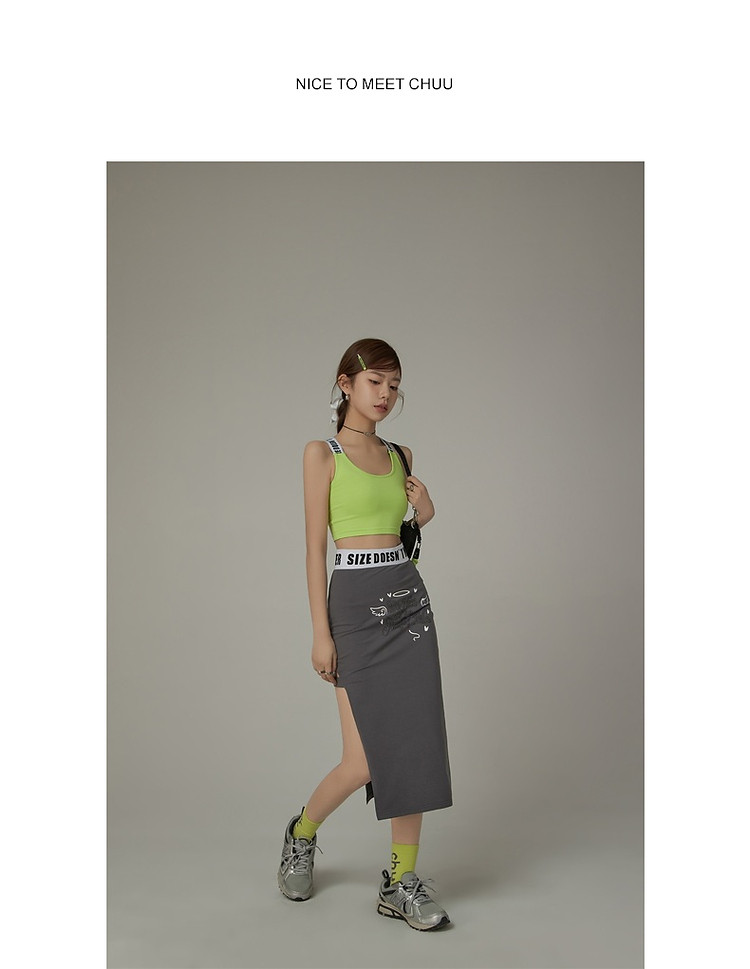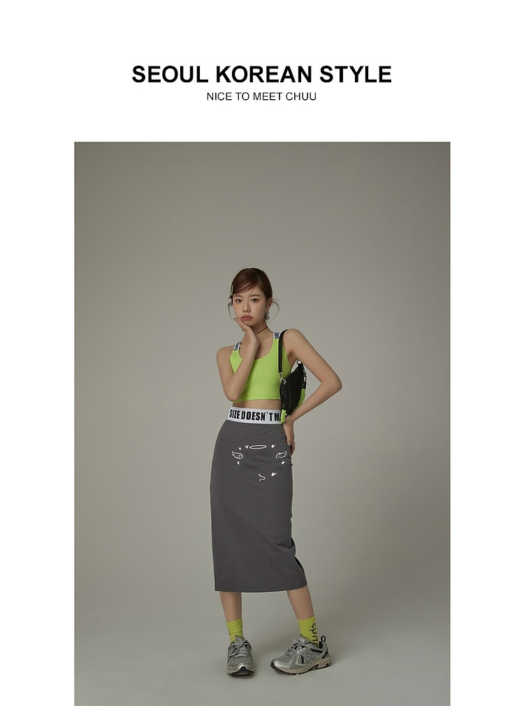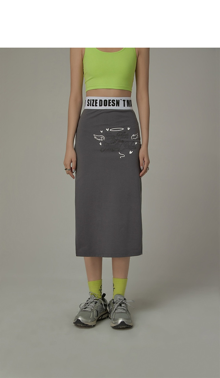 印花开衩半身裙女春夏辣妹字母镂空不对称包臀长裙子 463763